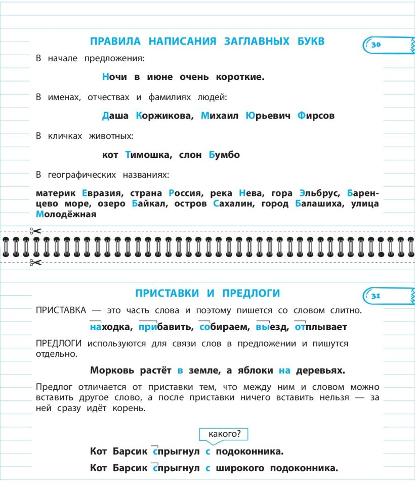 Каждую страницу можно вырезать по пунктирной линии и использовать как карточку, которая поможет быстрее усвоить основные правила.