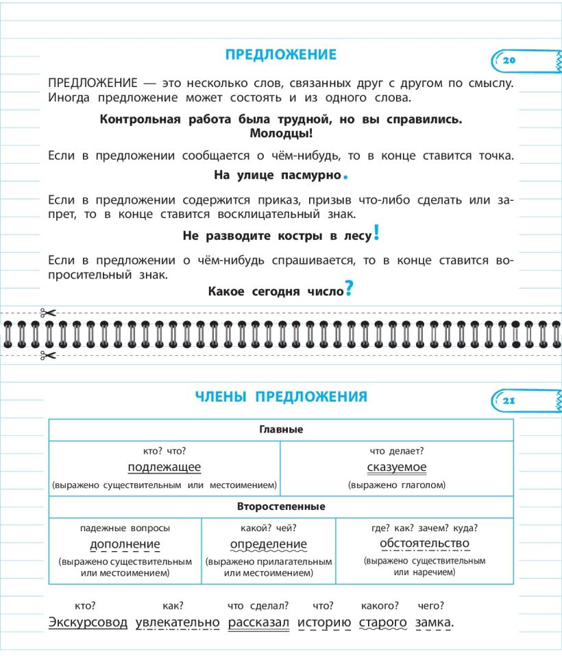 Каждую страницу можно вырезать по пунктирной линии и использовать как карточку, с помощью которой можно будет быстрее и прочнее усвоить основные правила. Современное и удобное в использовании пособие соответствует требованиям ФГОС начального общего образования.