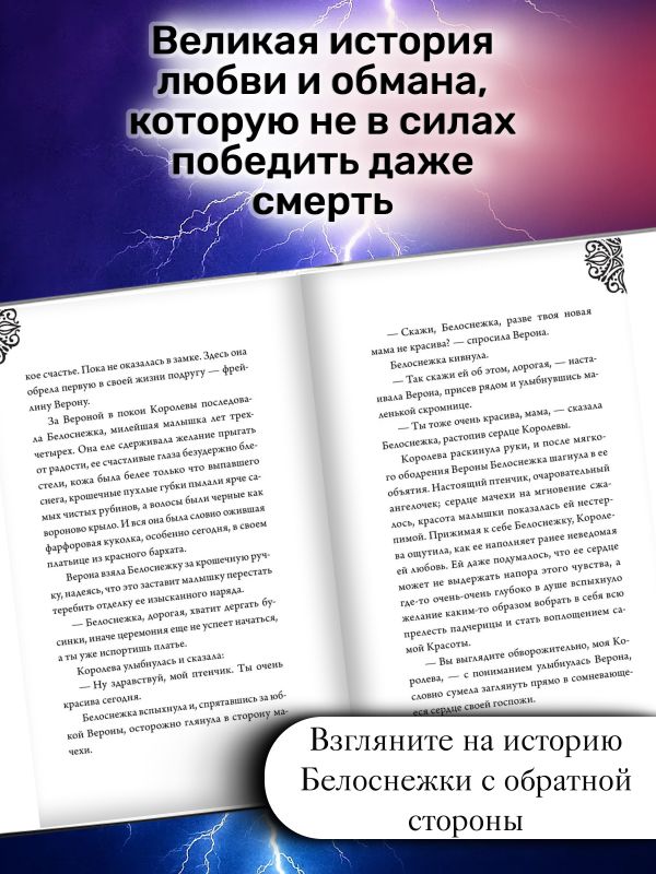 Но вы ведь и это помните, а что тогда нового в книге, спросите вы. А ничего. Несколько подробных деталей, разоблачающих подробностей о жизни юной Белоснежки и отношениях в королевской семье, кстати, книга ведется от лица той, что всех прекрасней…была когда-то, пока не изменила себе и не запуталась в паутине собственного отчаяния и одиночества.