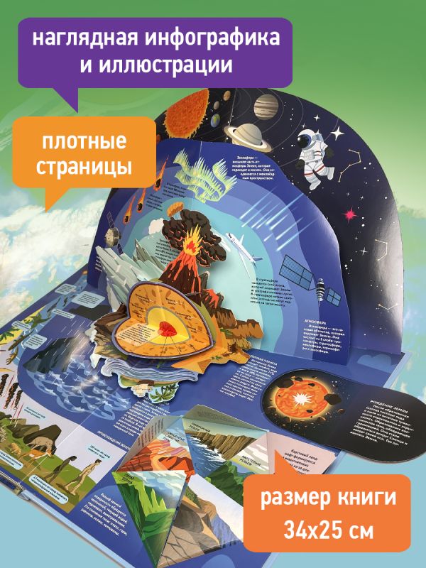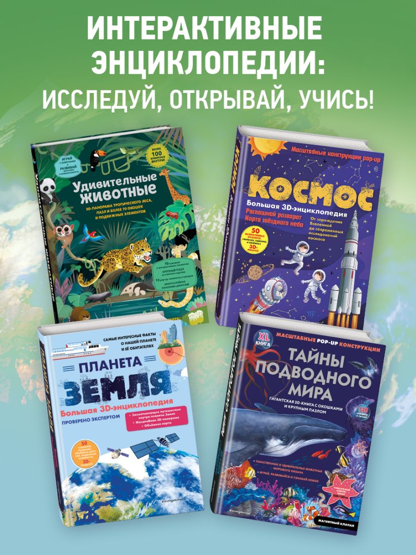 Большая иллюстрированная энциклопедия с подвижными деталями и масштабными конструкциями pop-up! Интерактивные элементы разных форм и принципов действия: объёмные 3D-панорамы, множество клапанов, встроенные раскладные детали, распашной разворот. Актуальная информация, проверенная экспертом, и реалистичные иллюстрации. Надёжно и качественно: большой формат, твёрдый переплёт, страницы из плотного картона.