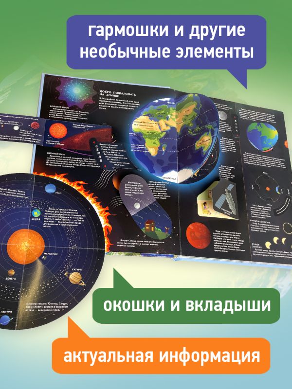 Эта книга станет отличным подарком для любознательных мальчиков и девочек, ведь с ней можно не только изучать новое, но и играть! Множество интерактивных элементов сделают знакомство с нашей планетой невероятно увлекательным. Лучшая книга для нескучного обучения.