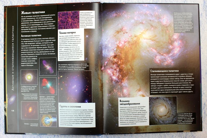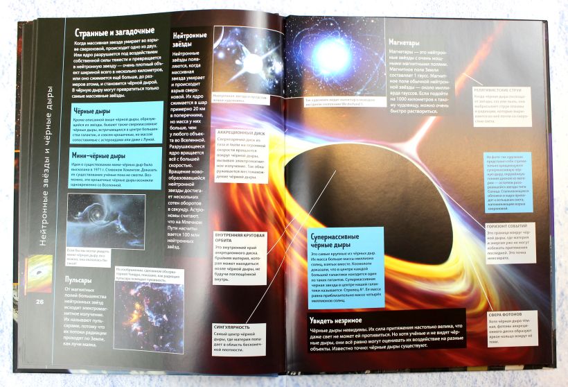 Это невероятно красочное издание входит в ТОП-100 лучших в мире книг по астрономии рейтинга Amazon. Оно посвящено одной из самых захватывающих тем — нашей Вселенной. А ещё у энциклопедии есть удивительный секрет: она светится в темноте! Читатели узнают, как образовались разные небесные тела, в чём секрет природных явлений, наблюдаемых в небе, как находить невооружённым глазом различные созвездия и планеты и многое другое. Карты небесных полушарий и сделанные своими руками астрономические инструменты помогут каждому мастерски ориентироваться в самых загадочных уголках звёздного неба! А разглядеть объекты Солнечной системе во всей их красе позволят большие и яркие фотографии. Книга будет интересна и полезна как школьникам, так и взрослым любителям космоса. Она отлично подходит для изучения всей семьёй и послужит идеальным подарком по любому поводу!