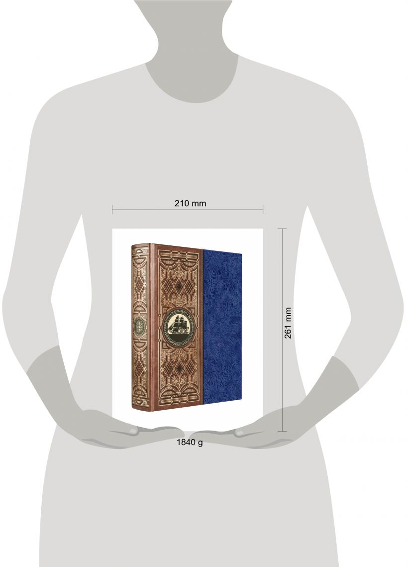 В оформлении переплета использованы универсальные растительно-геометрические орнаменты, благодаря им книга будет отлично смотреться на любой книжной полке. Лента для закладывания страниц и каптал, скрепляющий верх и низ объемного тома, изготовлены из шелка. Бумага в книге легкая, матовая, что обеспечивает комфортное чтение даже длительное время, цветные иллюстрации напечатаны на высокобелой мелованной бумаге. Обрез книги окрашен, торшонирован и вызолочен вручную.