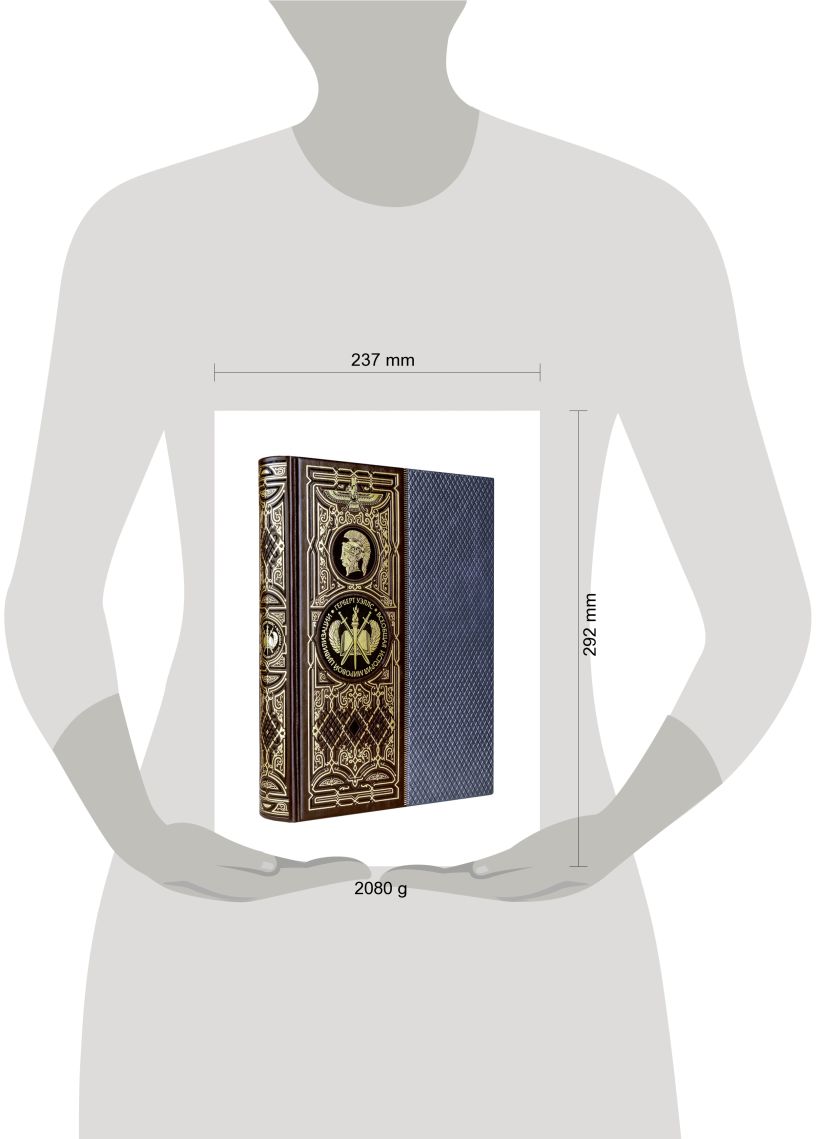 Книга в коллекционном инкрустированном переплете, который украшен сплошным тончайшим тиснением. Переплет изготовлен их двух видов натуральной кожи (синего и коричневого цвета) по технологии XIX века, в полном соответствии с лучшими образцами переплетов европейских мастеров. В оформлении переплета использованы универсальные растительно-геометрические плетtные орнаменты, благодаря им книга будет отлично смотреться на любой книжной полке. Лента для закладывания страниц и каптал, скрепляющий верх и низ объемного тома, изготовлены из шелка. Бумага в книге легкая, матовая, что обеспечивает комфортное чтение даже длительное время, иллюстрации напечатаны на высокобелой мелованной бумаге. Обрез книги окрашен, торшонирован и вызолочен вручную. Книга помещена в прочный футляр с магнитным замком и шелковой лентой, облегчающей вынимание. На крышке футляра тисненная золотом марка серии. К книге прилагается красочный сертификат, подтверждающий уникальность издания, он вложен в каждый экземпляр экземпляр и пронумерован вручную.