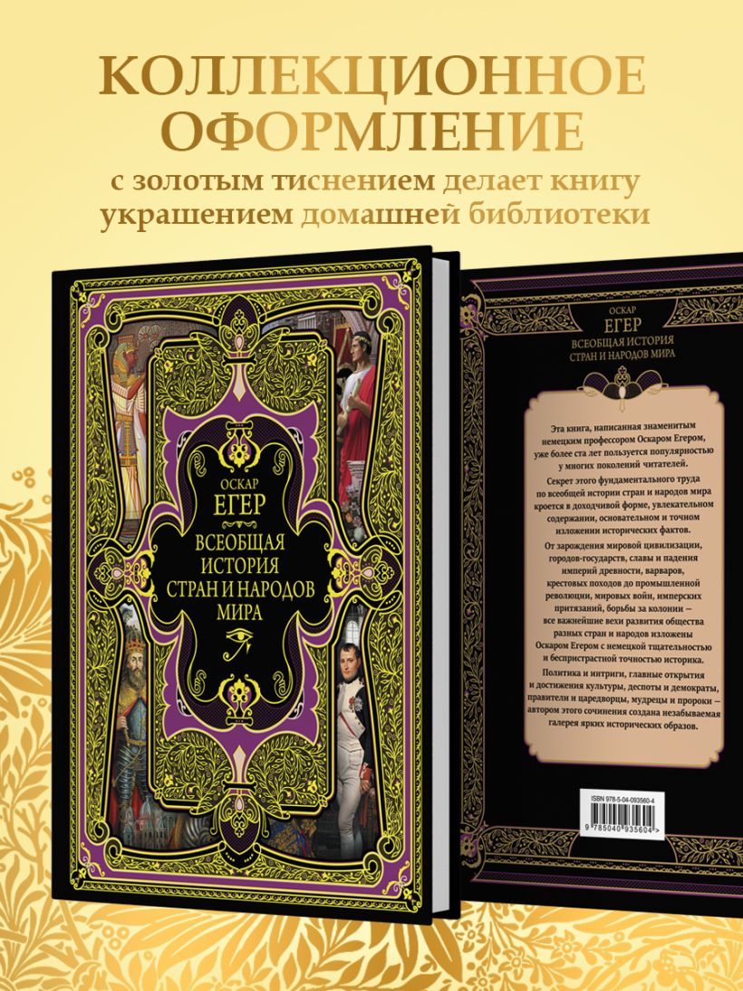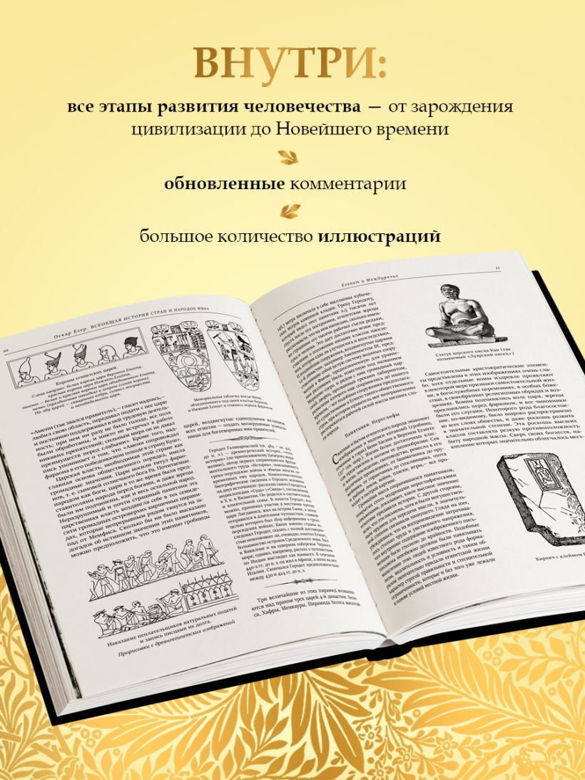 Фундаментальная работа немецкого историка и педагога Оскара Йегера охватывает все важнейшие вехи в истории человечества - от зарождения мировой цивилизации, городов-государств, славы и падения империй древности, варваров, крестовых походов до промышленной революции, мировых войн, имперских притязаний, борьбы за колонии. "Взвешивая факты со строгой критикой обширного знания, О. Йегер избирает из них немногое; но то, что он дает, легко удерживается в памяти читателя и остается в сознании в виде представлений ясных, положительных и цельных… "Эти слова российского книгоиздателя А. Ф Маркса лучше всего отражают преимущества книги: краткость и простоту изложения материала. Ещё при жизни автора работы была переведена на несколько языков и пользовалась большим успехом у российской публики. Если вас интересует мировая история, история античности, средних веков и нового времени, эта книга станет неоценимым вкладом в вашу читательскую коллекцию. А знаменитое серийное оформление со сложным золотым тиснением, множеством черно-белых и цветных иллюстраций делают книгу превосходным подарком для близких людей, обладателей домашней библиотеки и увлекающихся историей людей.