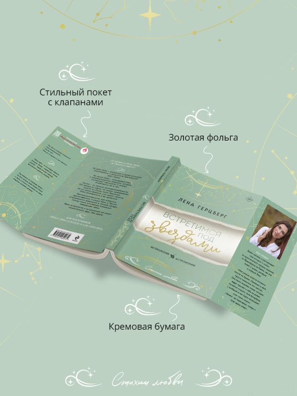 Новинка в серии «Стихии любви». Стильный покет с клапанами, кремовой бумагой и золотой фольгой. Оригинальная верстка со знаками Зодиака.