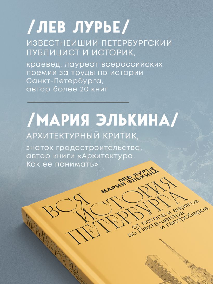 Лев Лурье — известный петербургский публицист и историк, Мария Элькина — архитектурный критик с безупречной профессиональной репутацией и эксперт в градостроительстве. Вместе они создали первую полноформатную историю Санкт-Петербурга для широкой аудитории.