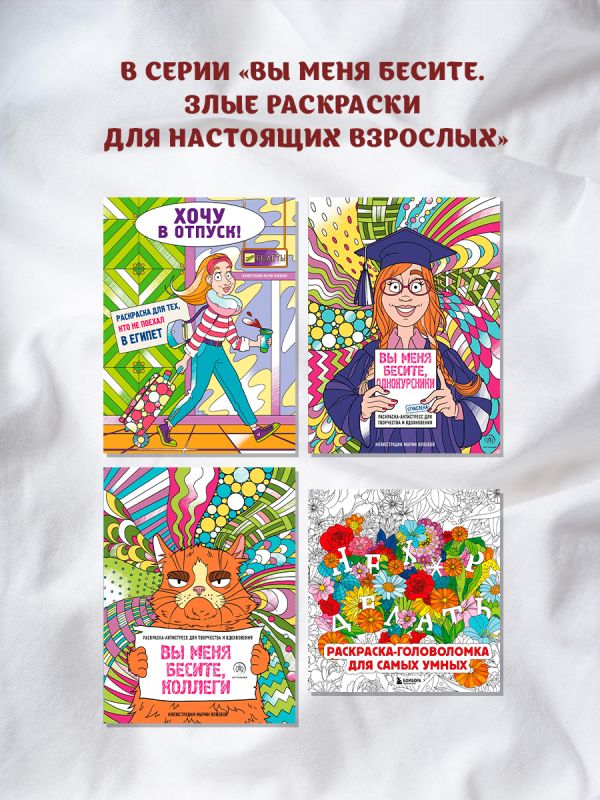Серия «Арт-терапия» — это множество причудливых узоров и фантастических рисунков, которые подарят вам спокойствие и умиротворение и помогут избавиться от стресса. Медитативные раскраски для взрослых, мировые бестселлеры, трендовые темы и море позитива.