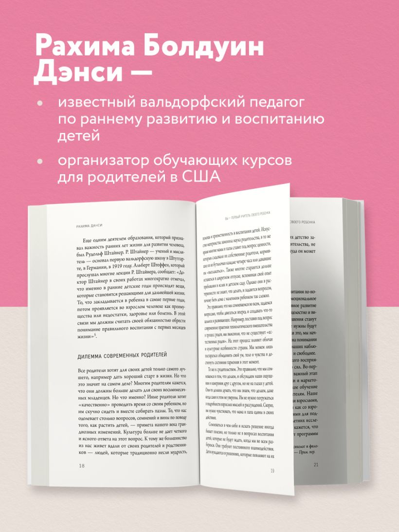 Рахима Болдуин Дэнси — известный вальдорфский педагог по раннему развитию и воспитанию детей. Организатор обучающих курсов для родителей в США. Первое издание этой книги вышло в 1989 году.