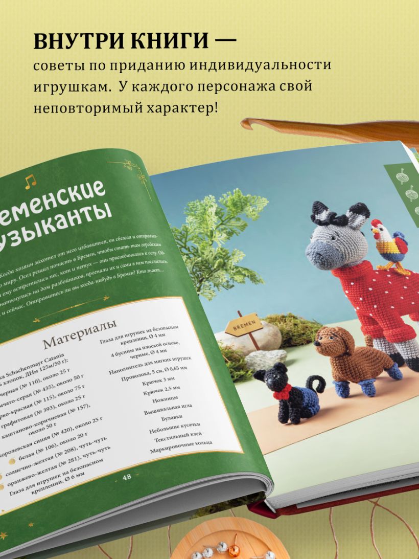 Возьмите в руки крючок и пряжу и оживите 45 известных героев из 17 сказок, знакомых каждому. Подружитесь с любимыми персонажами: сыграйте несколько зажигательных песен с Бременскими музыкантами, вместе с Гензелем и Гретель попробуйте на вкус пряничный домик и «убейте семерых одним махом» с Храбрым Портняжкой. Что бы вы ни делали — веселитесь. Но всегда остерегайтесь злого волка!