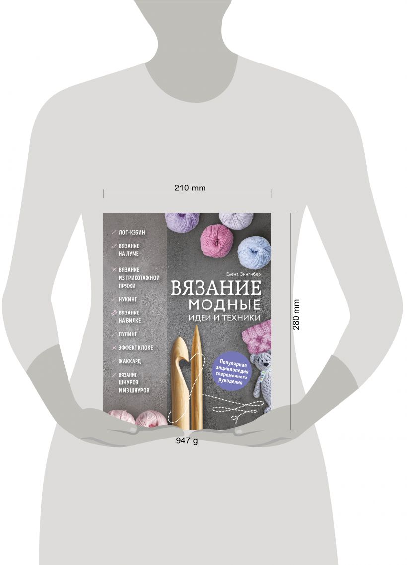 Новый формат книг по вязанию, так полюбившийся всем, кто хочет идти в ногу со временем, получил свое продолжение! Новый сборник самых модных и популярных на сегодняшний день видов и техник вязания: и крючком, и на спицах, и на лумах, и даже на вилке! Вы знаете, что такое лог-кэбин, самая модная тенденция в цветном вязании? Кроме него вы сможете познакомиться с нукингом, освоить вязание шнуров, пулинг и множество других вязальных секретов! Пошаговые иллюстрированные инструкции, советы по выбору материалов и приспособлений, тренировочные проекты для закрепления навыков – огромное поле для фантазии и воплощения любых идей креативной вязальщицы.