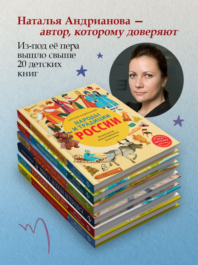 «Большое путешествие по России» — развивающая книга-игра для детей! Яркий виммельбух отправит юных исследователей в путешествие по разным уголкам России. На каждом из 10 разворотов спрятаны десятки предметов, животных и героев, связанных с культурой и историей знаковых мест, а также емкие описания каждой достопримечательности, чтобы узнавать свою страну стало еще интереснее. Почему эта книга понравится вам и вашему ребенку: • Развивает внимание, память и логику. • Помогает изучать географию России в увлекательной форме. • Подходит для совместного чтения и игр всей семьей. • Яркие, детализированные иллюстрации с множеством забавных мелочей, которые делают разглядывание еще интересней! Путешествуйте по России, не выходя из дома — ищите, находите и узнавайте новое!