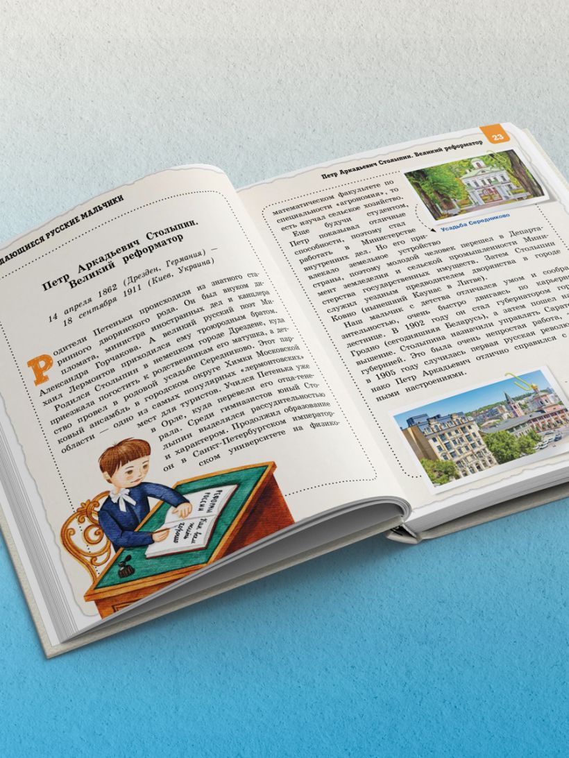 Книга «Выдающиеся русские мальчики, о которых знает весь мир» расскажет о двадцати пяти великих деятелях нашей страны, повлиявших на ее историю и прославивших русскую культуру на весь мир. В ней представлены великие исторические личности, известные ученые, главные деятели культуры, смелые первооткрыватели и титулованные спортсмены.