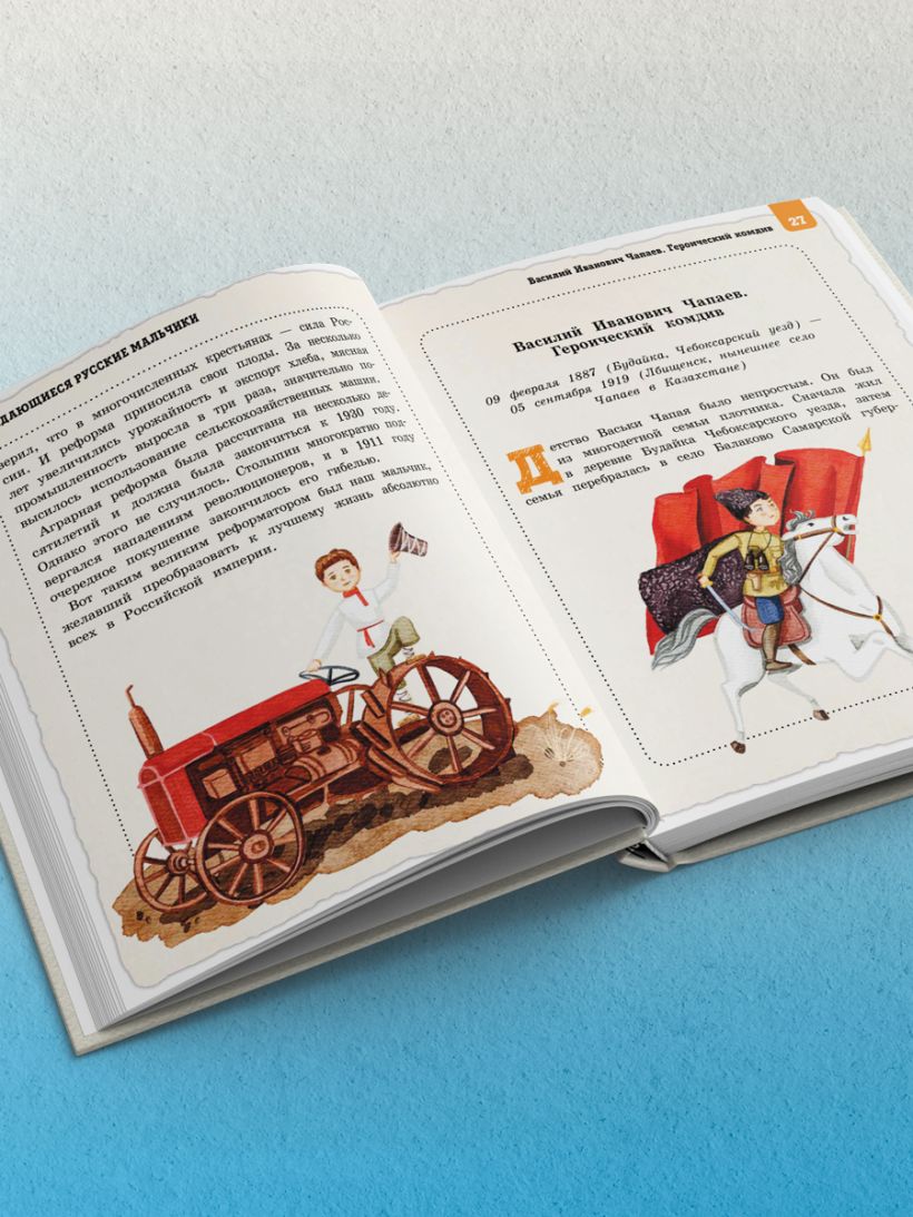 Александр Невский, Василий Чапаев, Михаил Булгаков, Владимир Даль, Николай Пирогов, Андрей Туполев, Сергей Рахманинов, Валерий Харламов, Сергей Эйзенштейн… Когда-то эти мальчики даже не представляли, что будущие поколения будут брать с них пример. Пусть эти истории вдохновят и тебя на новые свершения!