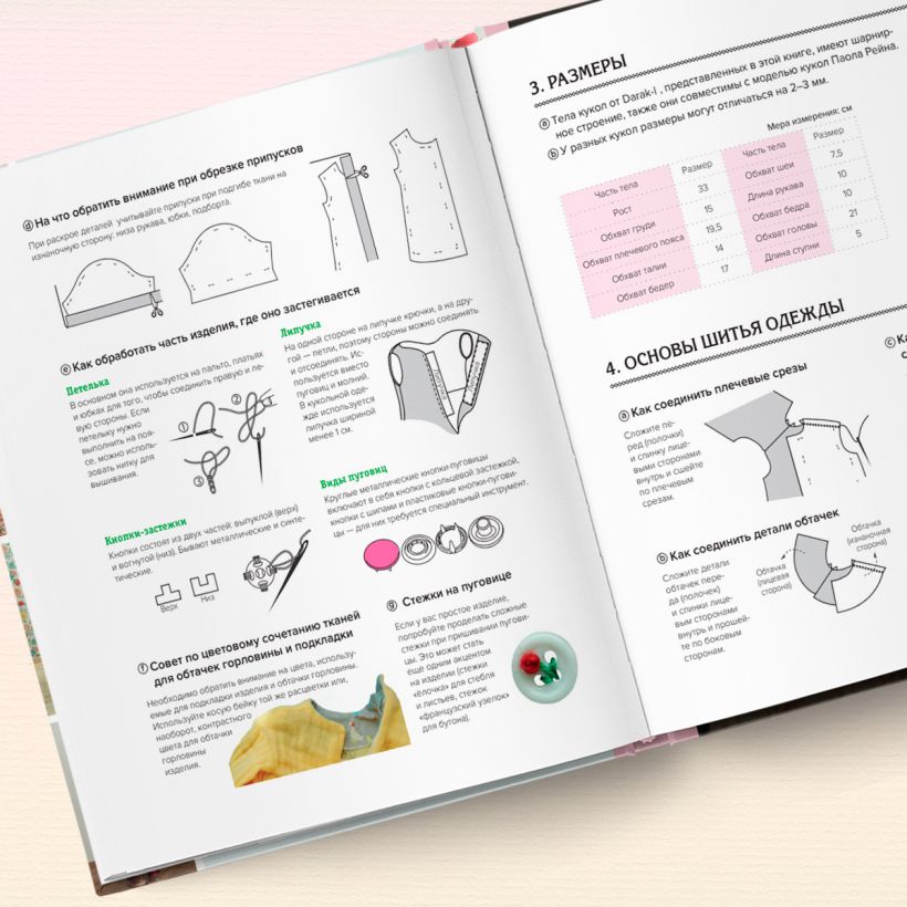 В качестве бонуса на страницах спрятаны дополнительные дизайны. Искать их весело, как при охоте за сокровищами. Давайте оденем вашу прекрасную куклу в красивую одежду, сшитую своими руками!