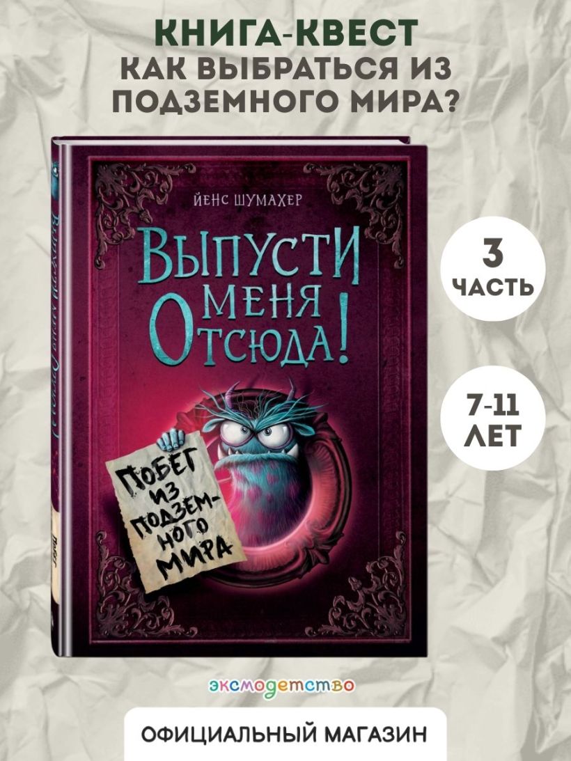 Третья книга популярного цикла «Выпусти меня отсюда!». На сей раз спасать нужно, читатель, ТЕБЯ! Ведь именно ТЫ оказался в Подземном мире в комнате у неприветливого монстра Шмыгоцефала... Чтобы вернуться обратно домой, тебе придётся пройти через сложные испытания на логику и внимание, а также постараться не встретиться с самыми страшными чудищами, обитающими под землёй.