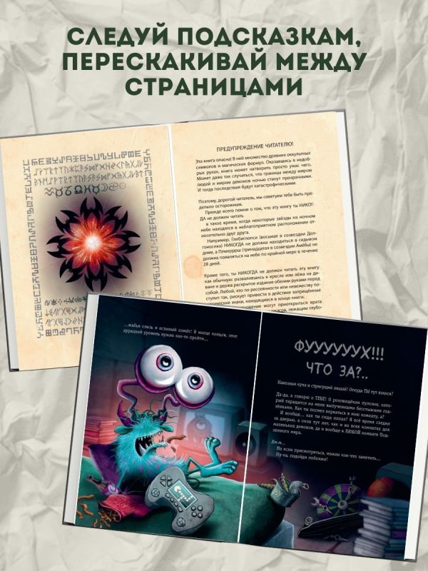 Новинка в международной серии-бестселлере — только в России продано более 600 000 экземпляров! Уникальный формат, сочетающий художественный текст + квест + разнообразные задания для читателей. Это издание создано для тех, кто считает, что читать — это скучно. Оно не оставит никаких сомнений, что с книгами можно классно проводить время: подтверждено тысячами положительных отзывов родителей! Секрет успеха серии в том, что книга ведёт живой, юмористический диалог с читателем, рассказывает ему страшные истории и приглашает в авантюрное приключение. Чтобы пройти всю книгу до конца (принимая решения на сюжетных развилках и переходя по разным страницам не по порядку), нужно разгадать немало загадок, которые развивают внимание и мышление. В этом издании, помимо увлекательного квеста и головоломок, книга научит читателей рисовать своего собственного монстра — всё, что нужно для увлекательного досуга!