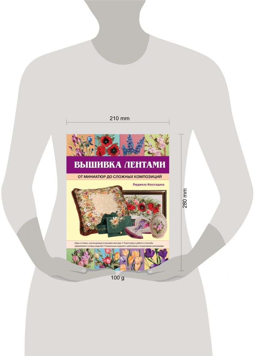 Вышивка лентами открывает перед рукодельницами огромные возможности: множество видов самих ленточек, ниток, тканей для основы и бесконечное число сюжетов для будущих работ – вот отличительные черты этого вида искусства. Замечательная вышивальщица и художница Людмила Невзгодина представляет вашему вниманию по-настоящему уникальную энциклопедию, в которой вы найдете всю необходимую информацию о видах и способах вышивки лентами, о подготовке к работе и об оформлении готовых изделий. Вы узнаете, какие существуют швы и стежки, и какие нюансы следует учитывать в процессе вышивания. Кроме этого, в книге представлено более 30 работ разных уровней сложности, которые при желании вы сможете повторить или создать на их основе собственные картины. Все изделия сопровождаются подробными пошаговыми описаниями, большим количеством иллюстраций и шаблонами в натуральный размер.