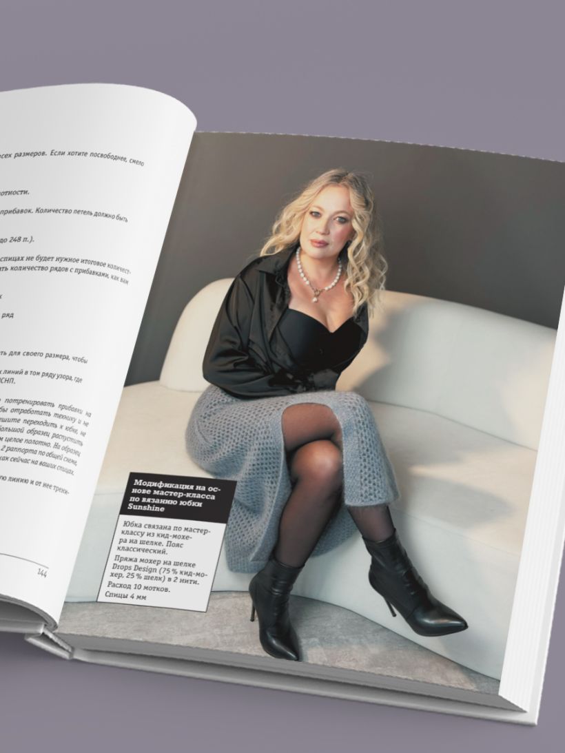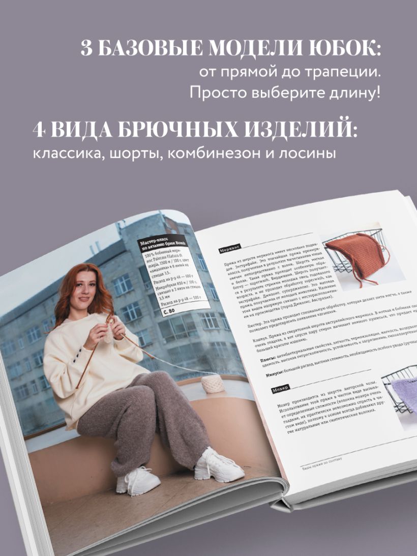 «Вязание ниже пояса» — это первая авторская система бесшовного кругового вязания юбок, шорт, лосин и комбинезонов, словом, любых поясных изделий, как нарядных, так и повседневных, по индивидуальным меркам.