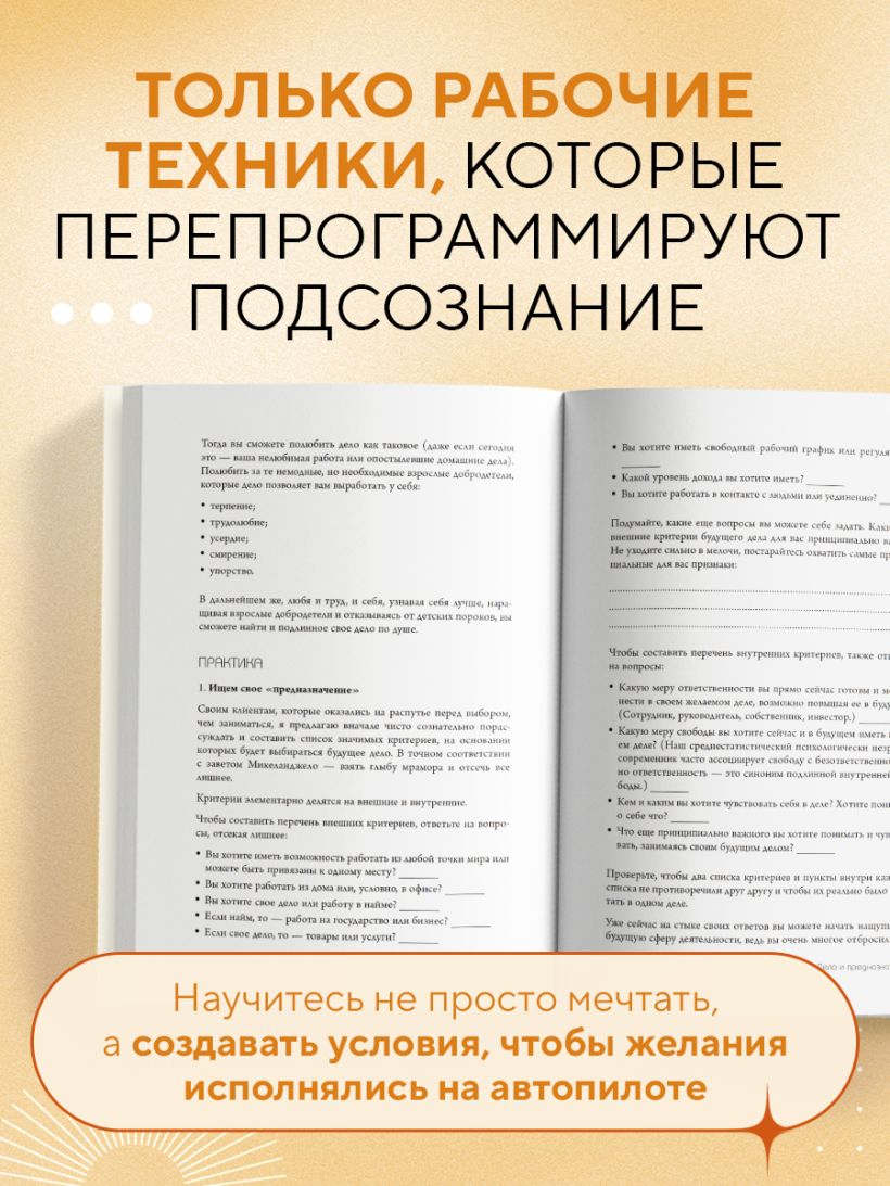 Здесь вы найдете логические техники для вашего сознательного «Я» и образные техники для бессознательного. С помощью первых вы сможете сформулировать, чего именно хотите, а вторые помогут создать условия для реализации цели. Спустя 30 дней у вас не будет вопросов «Где взять энергию» и «В чем смысл жизни». Вы отыщете ответы внутри себя и станете человеком, который точно знает, чего хочет, и без проблем достигает желаемого.