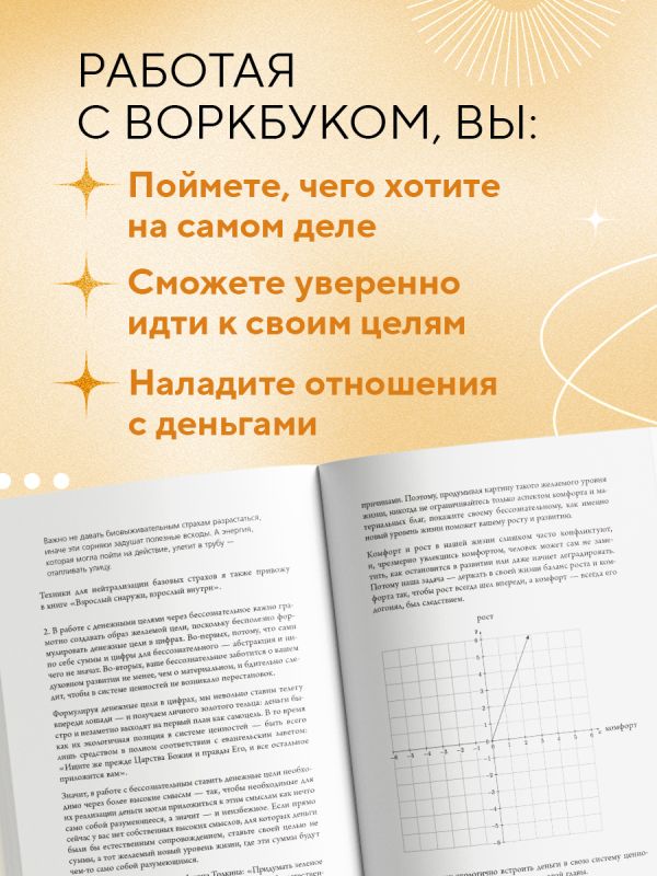 Вера Дейногалериан — психотерапевт, помогающий прокачивать сферу финансов, духовность, уверенность в себе через бессознательное, без долгих лет терапии. Автор использует эмоционально-образную терапию, предлагая клиентам и читателям обратиться к внутренним образам, порождающим внутренний конфликт.
