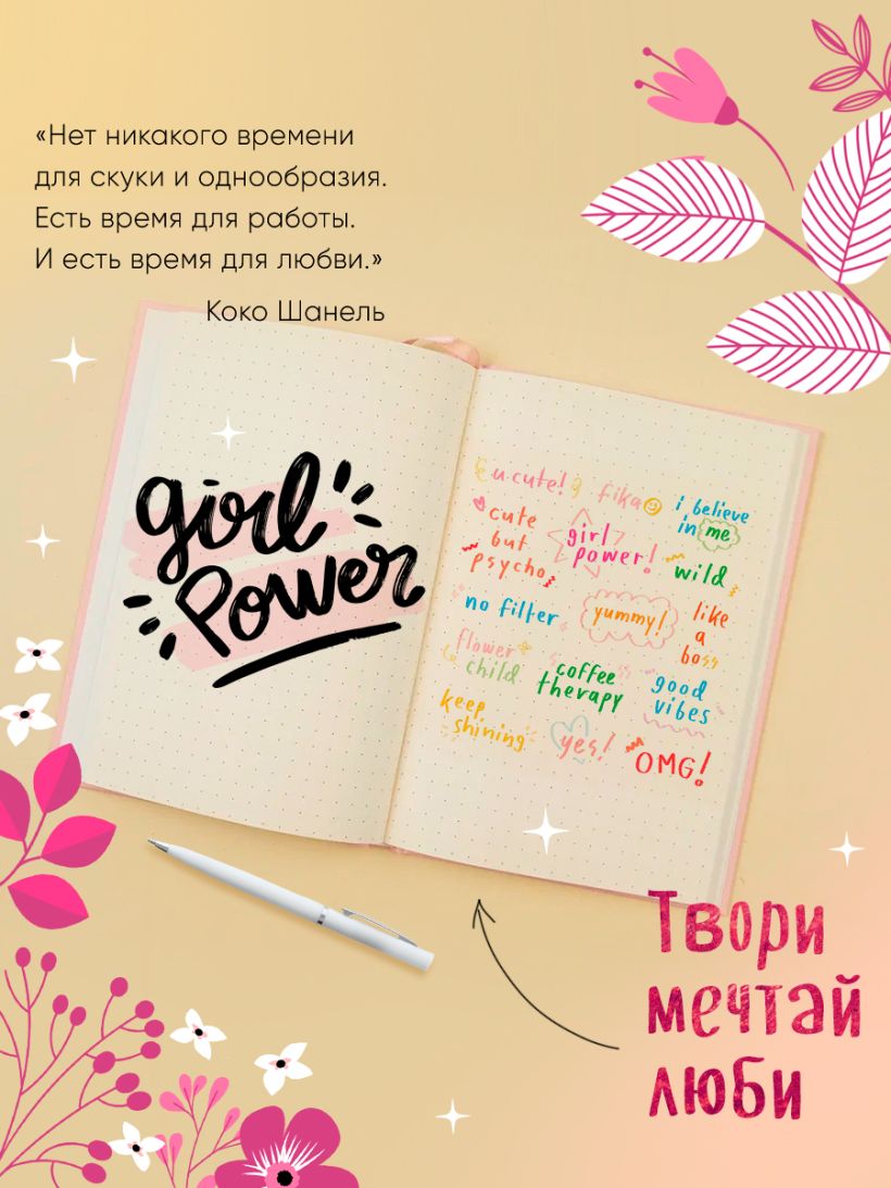 Удобный стильный блокнот специально для тебя! Не бойся быть сильной, следуй за своими мечтами, создавай то, чего еще не было! Этот блокнот вдохновит тебя на новые идеи, подарит свободу самовыражения и не даст забыть, что в этом мире действительно важно! Дерзай!