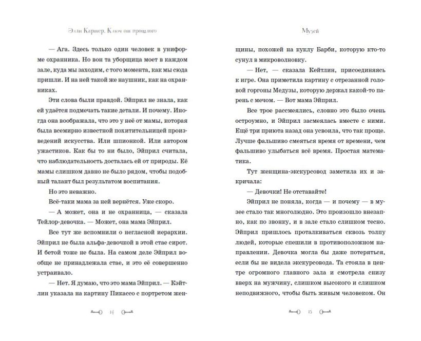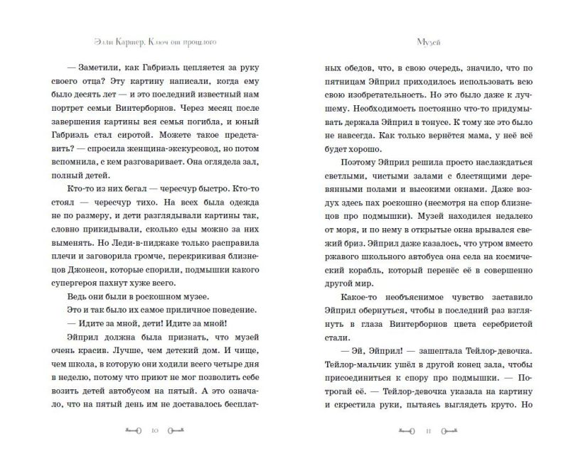 Приключения, загадочные поместья, пропавшие наследники богатых семей, таинственные ключи... Всё это ждёт вас на страницах серии «Тайна дома Винтерборнов». Приготовьтесь к по-настоящему увлекательному чтению. Яркая обложка сразу погружает в атмосферу этой истории, где детям предстоит разгадывать тайны, которые оказываются не по зубам взрослым. Потрясающий язык, тонкий юмор, живые герои, сюжет, который покоряет с первой страницы и не отпускает до последней, неожиданные повороты — всё это делает «Ключ от прошлого» идеальной книгой для юных (и не только) любителей приключений! Элли Картер — известный американский автор бестселлеров. Её книги издаются в двадцати странах мира, и их суммарный тираж составил более трёх миллионов. Она точно знает, как увлечь читателя!