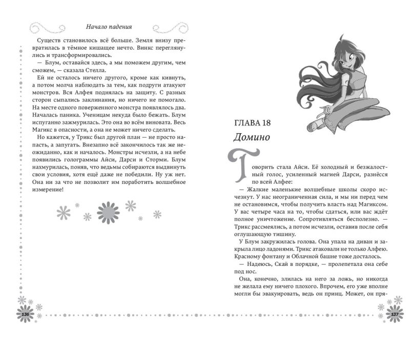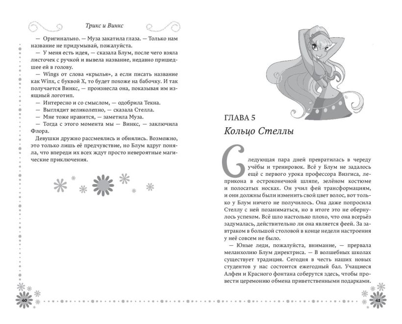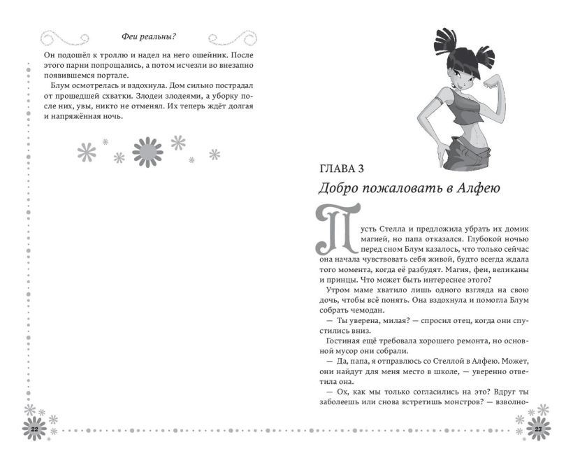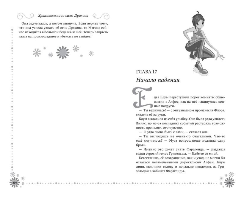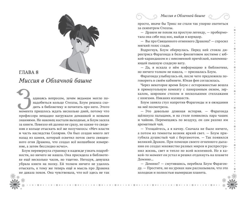 В этой книге вас ждет пересказ первого сезона мультсериала, вставки с интересными фактами и цветные вклейки из мультика, ну и, конечно же, Блум, Флора, Стела, Муза, Текна.