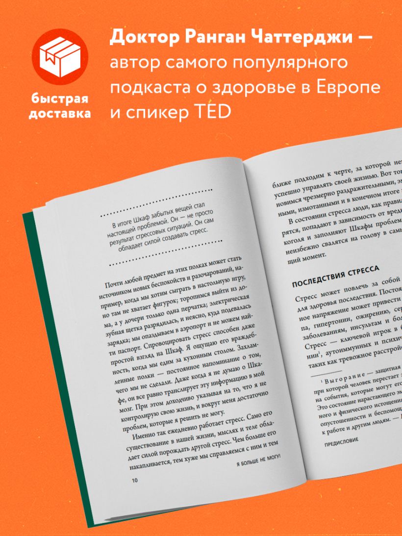 Доктор Ранган Чаттерджи, автор самого популярного подкаста о здоровье в Европе и спикер TED, знает: чтобы справиться с нарастающим напряжением и эмоциональным выгоранием, не нужно уезжать подальше от цивилизации и избавляться от любых раздражителей. Нет, стресс — всего лишь реакция, которая возникает внутри и поддается корректировке. Поэтому, лишь немного изменив подход к своему телу, сознанию, отношениям и целям, мы с удивлением обнаружим, как прекрасен мир вокруг нас и как мало вещей, на которые на самом деле стоит тратить свои нервы.