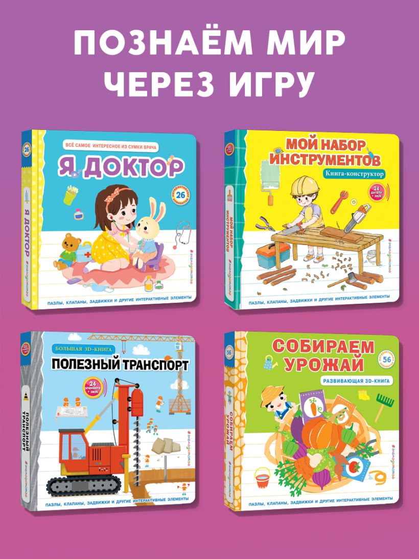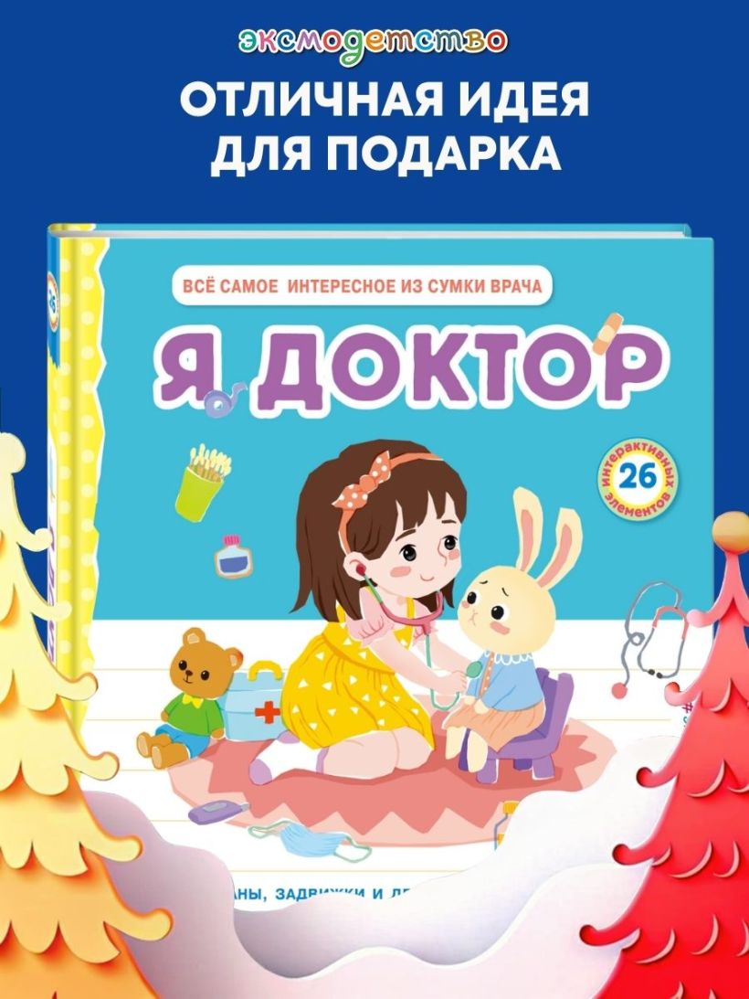 Играем в доктора! Невероятно увлекательная 3D-книга для детей — на каждом развороте расположены интерактивные элементы, которые выглядят и работают как настоящие медицинские инструменты.