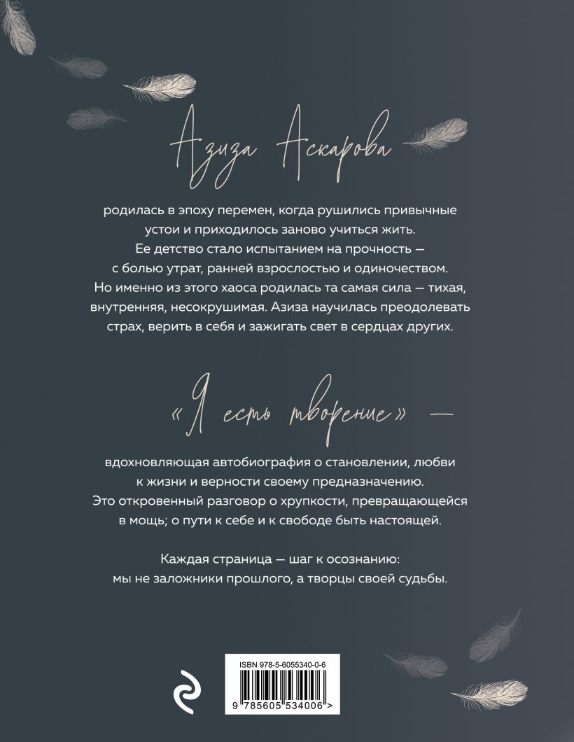 «Я есть творение» — вдохновляющая автобиография о становлении, любви к жизни и верности своему предназначению. Это откровенный разговор о хрупкости, превращающейся в мощь; о пути к себе и к свободе быть настоящей. Каждая страница — шаг к осознанию: мы не заложники прошлого, а творцы своей судьбы.