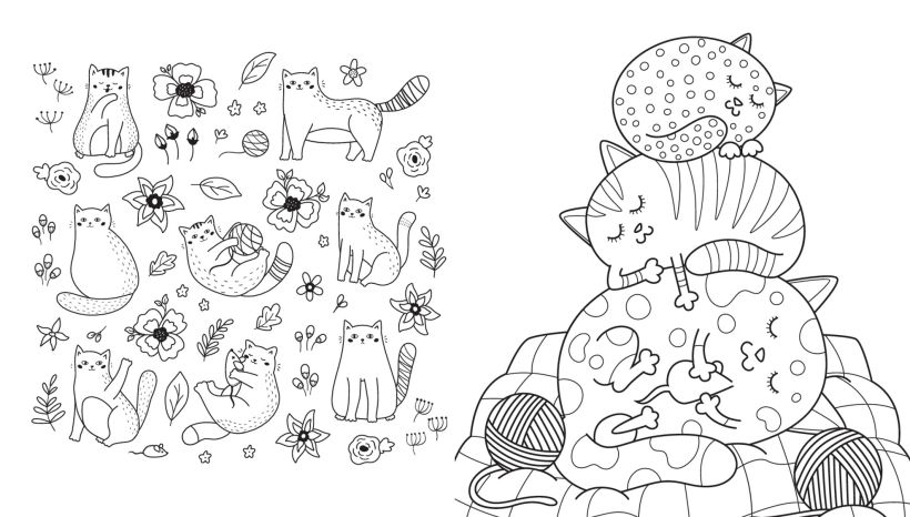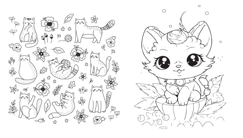 Заполни страницы цветом и сделай котят еще замурчательнее!