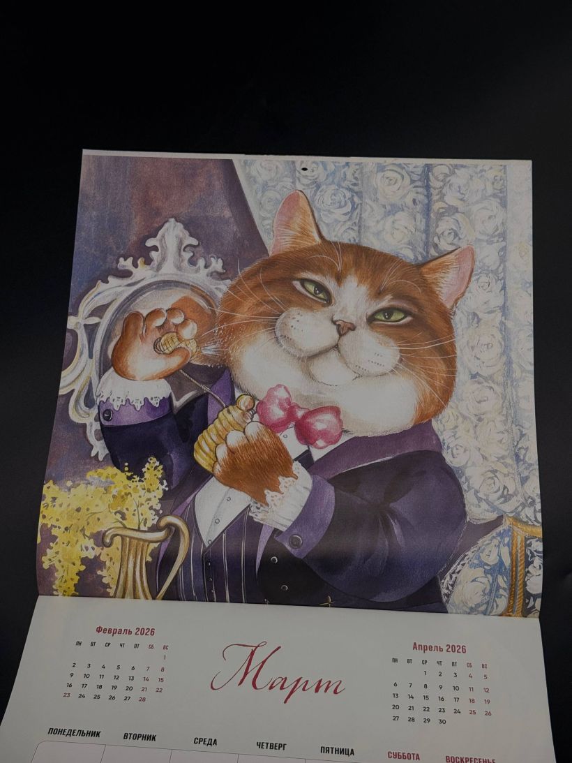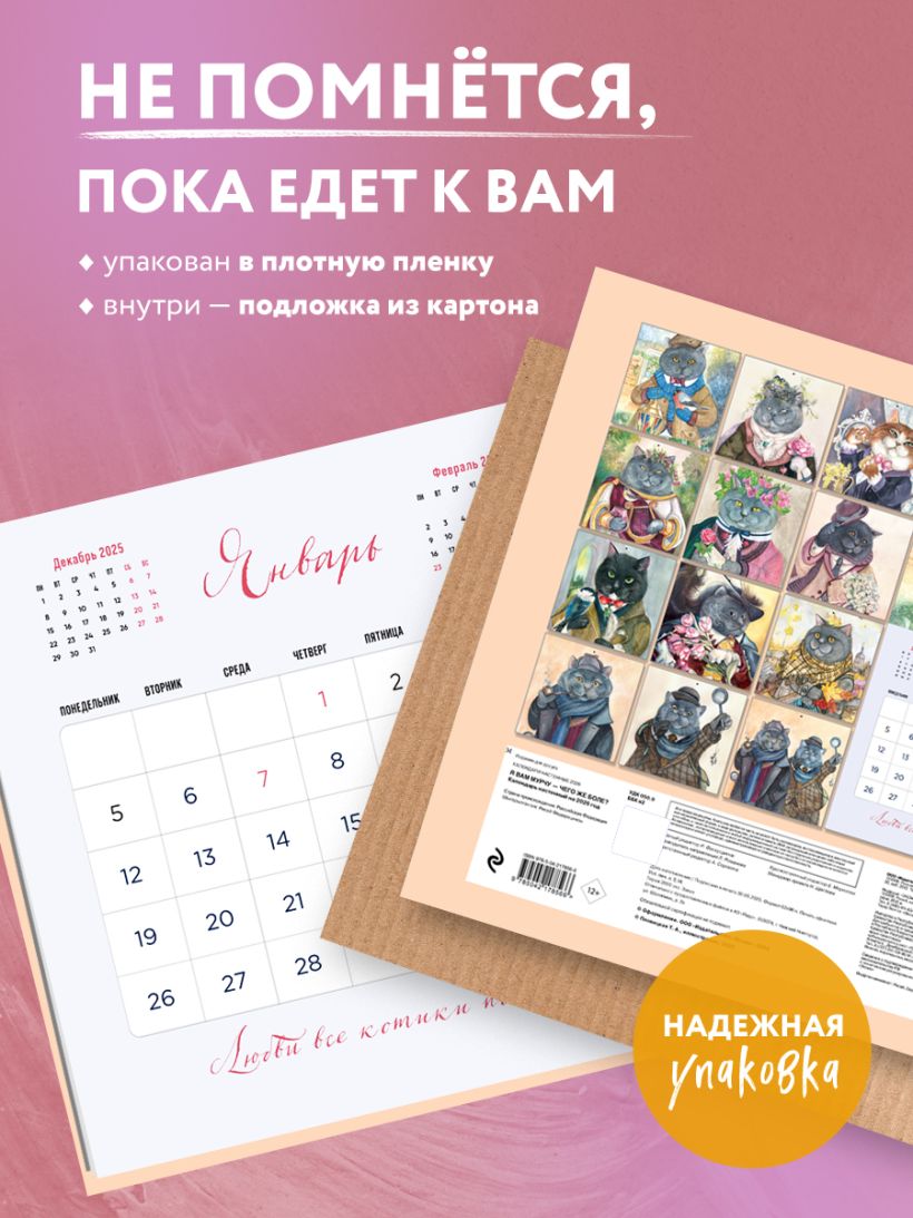 «Я вам мурчу, — чего же боле?» — настенный календарь для тех, кто любит котов и литературу. На каждом месяце — харизматичный кот в образе культового героя и фраза-каламбур: пушистая интерпретация известных литературных цитат. Этот календарь станет стильным украшением интерьера и подарит интеллектуальное удовольствие с ноткой иронии.