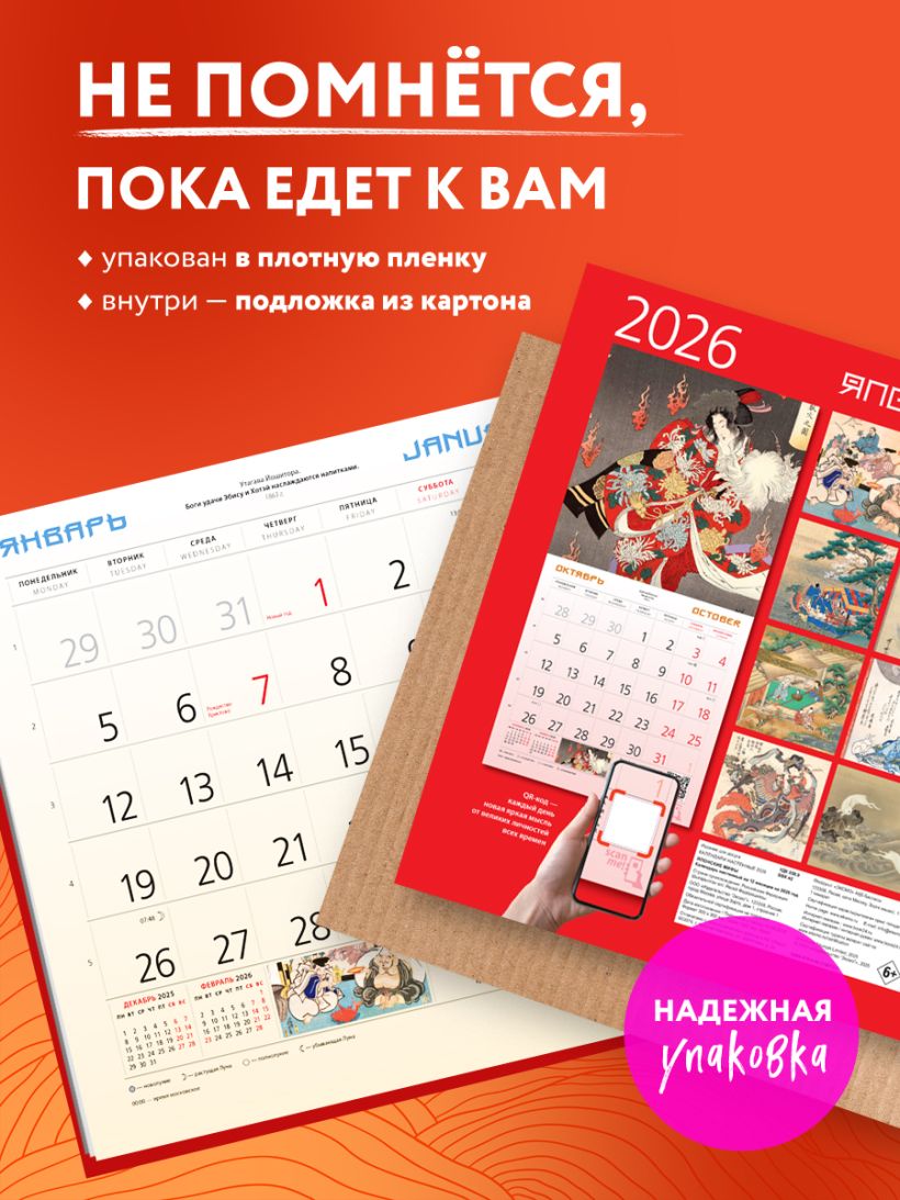 В этом настенном перекидном календаре на 2026 год представлены знаменитые картины художников, вдохновенные мифами Страны Восходящего Солнца. Повесьте этот календарь в своем доме или на рабочем месте, и он достойно украсит любой интерьер. А календарный блок напомнит о важных событиях года. В центре календаря помещен большой арт-постер, который может стать отдельным декоративным украшением интерьера.