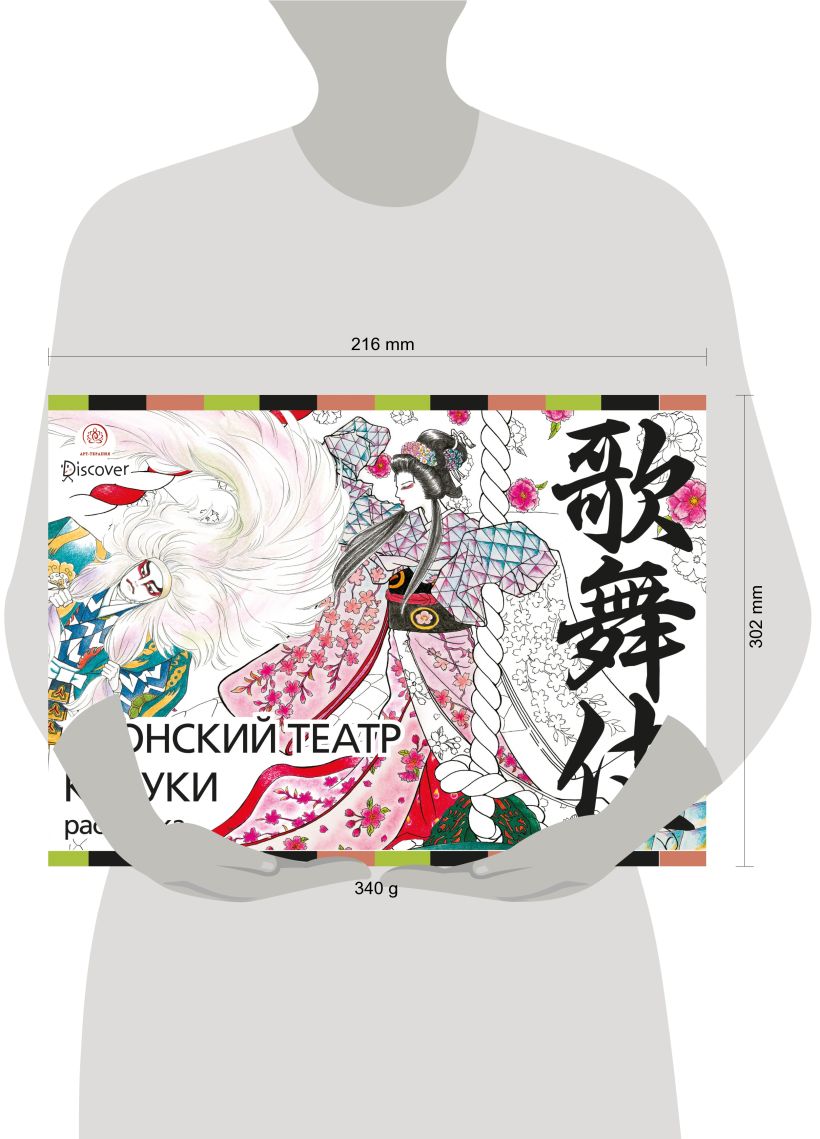 Добавьте красок великолепным узорам на кимоно актеров, поиграйте с гримом и символикой! Используйте акварельные карандаши или гелевые ручки, чтобы создавать авторские, неповторимые декорации. Погрузитесь в восхитительный и загадочный мир японского театра кабуки!
