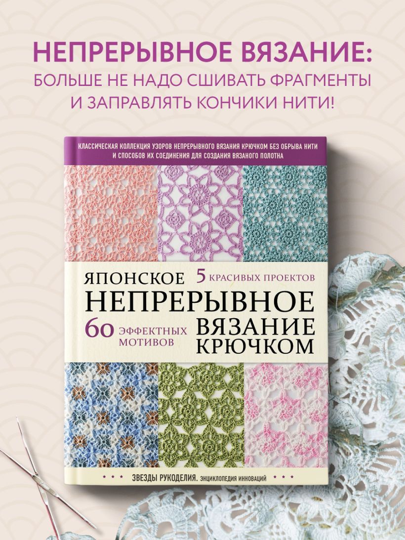 Японское непрерывное вязание крючком. 60 эффектных мотивов и 5 красивых проектов