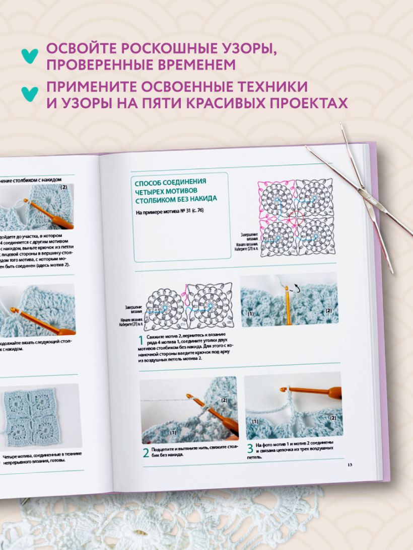 Проверенное временем пособие, красивое и практичное, предлагает не только 60 элегантных узоров от лучших японских мастеров. Вас ждет немало сюрпризов: пять красивых моделей наглядно продемонстрируют практическое использование техники, удобные двухцветные схемы, инструкции и пояснения во всех сложных местах. Справится даже новичок! Вам больше не нужно орудовать иглой дольше, чем спицами. Красиво, логично, аккуратно — этот девиз японских рукодельниц не требует расшифровки. Но мы бы добавили: просто, технологично, эффектно!