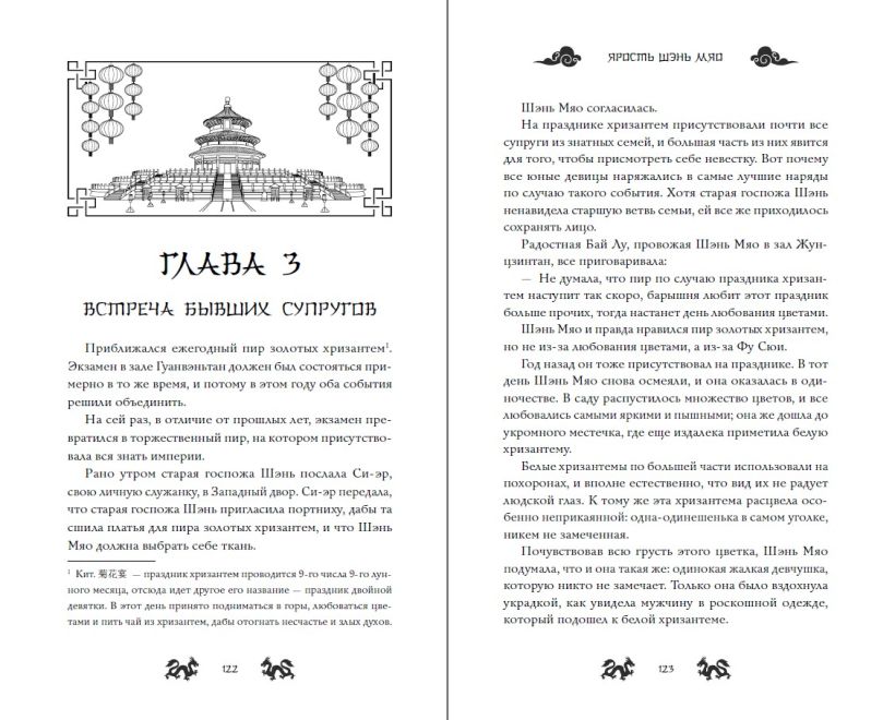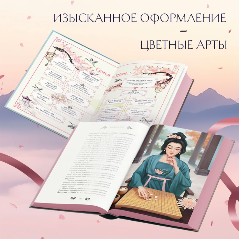 Вас ожидают предисловие переводчицы, невероятно красивые цветные сюжетные вклейки, цветные форзацы с генеалогическим древом семьи Шэнь и закрашенный обрез!