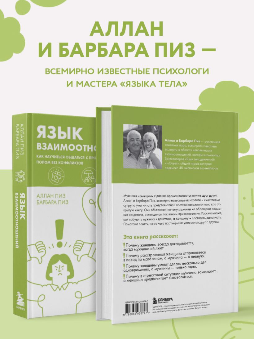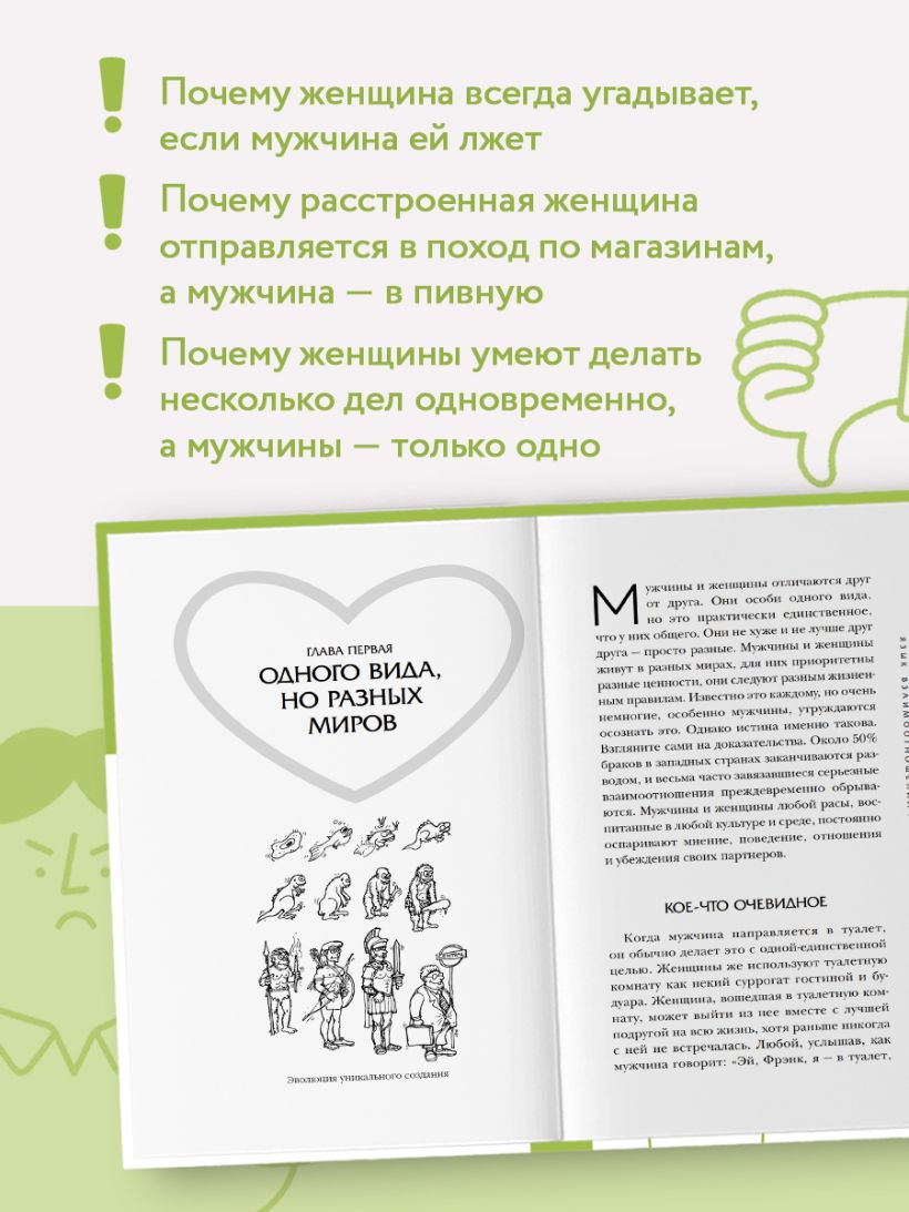 Мужчины и женщины с давних времен пытаются понять друг друга. Аллан и Барбара Пиз, всемирно известные психологи и счастливые супруги, учат читать представителей противоположного пола как открытую книгу. Они объясняют, почему мужчины не обращают внимания на детали, а женщинам так важны прикосновения. Рассказывают, как побудить мужчину к действию, а женщину — заставить замолчать. Помогают понять, из-за чего партнеры не уживаются друг с другом.