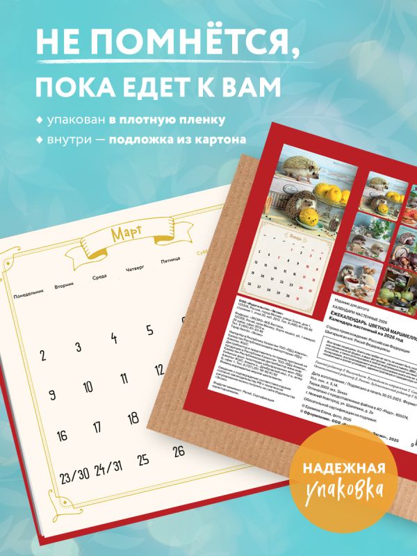 Каждый месяц — новая фотография славного ежиного семейства, удобная календарная сетка и хорошее настроение!