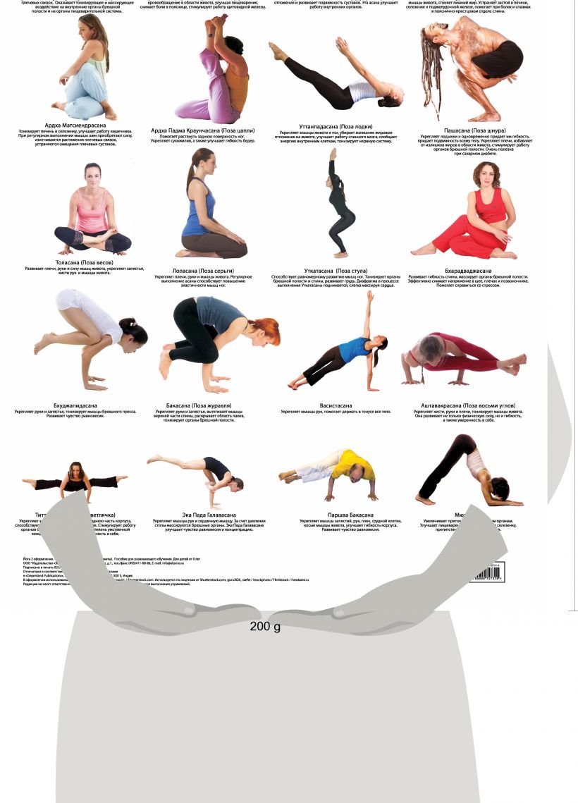 Учебный плакат расскажет о пользе каждой позы йоги, покажет, как правильно их выполнять и поможет вам быть в форме!