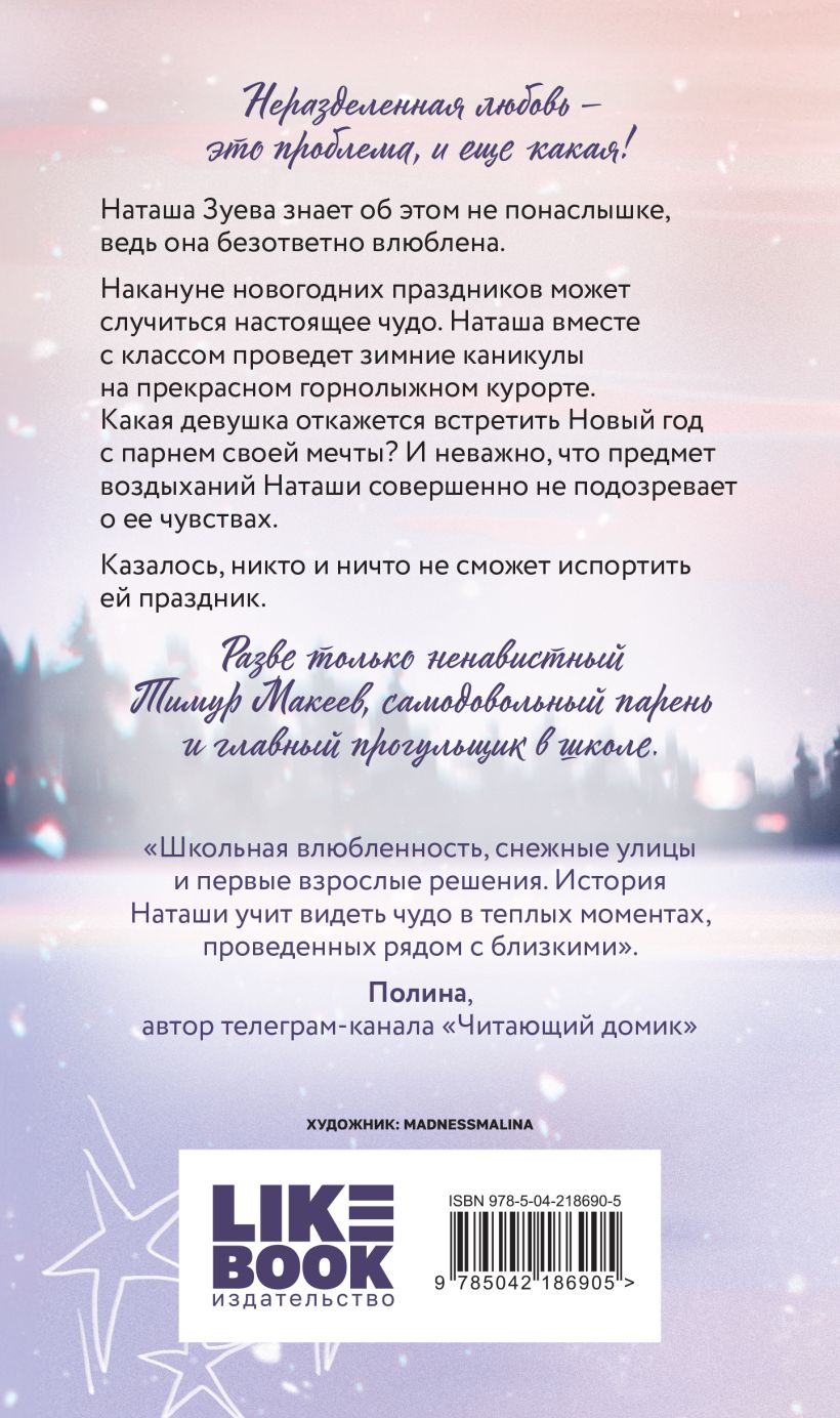 Накануне новогодних праздников может случиться настоящее чудо. Наташа вместе с классом проведет зимние каникулы на прекрасном горнолыжном курорте. Какая девушка откажется встретить Новый год с парнем своей мечты? И неважно, что предмет воздыханий Наташи совершенно не подозревает о ее чувствах.