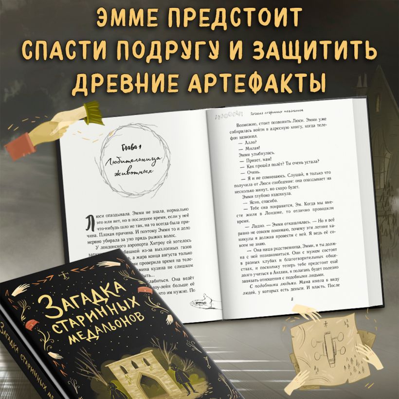 Название на обложке выпуклое и покрыто золотой фольгой. Это очень красиво! Древние артефакты, потайные комнаты, семейные тайны и атмосферная британская школа-интернат с множеством секретов!