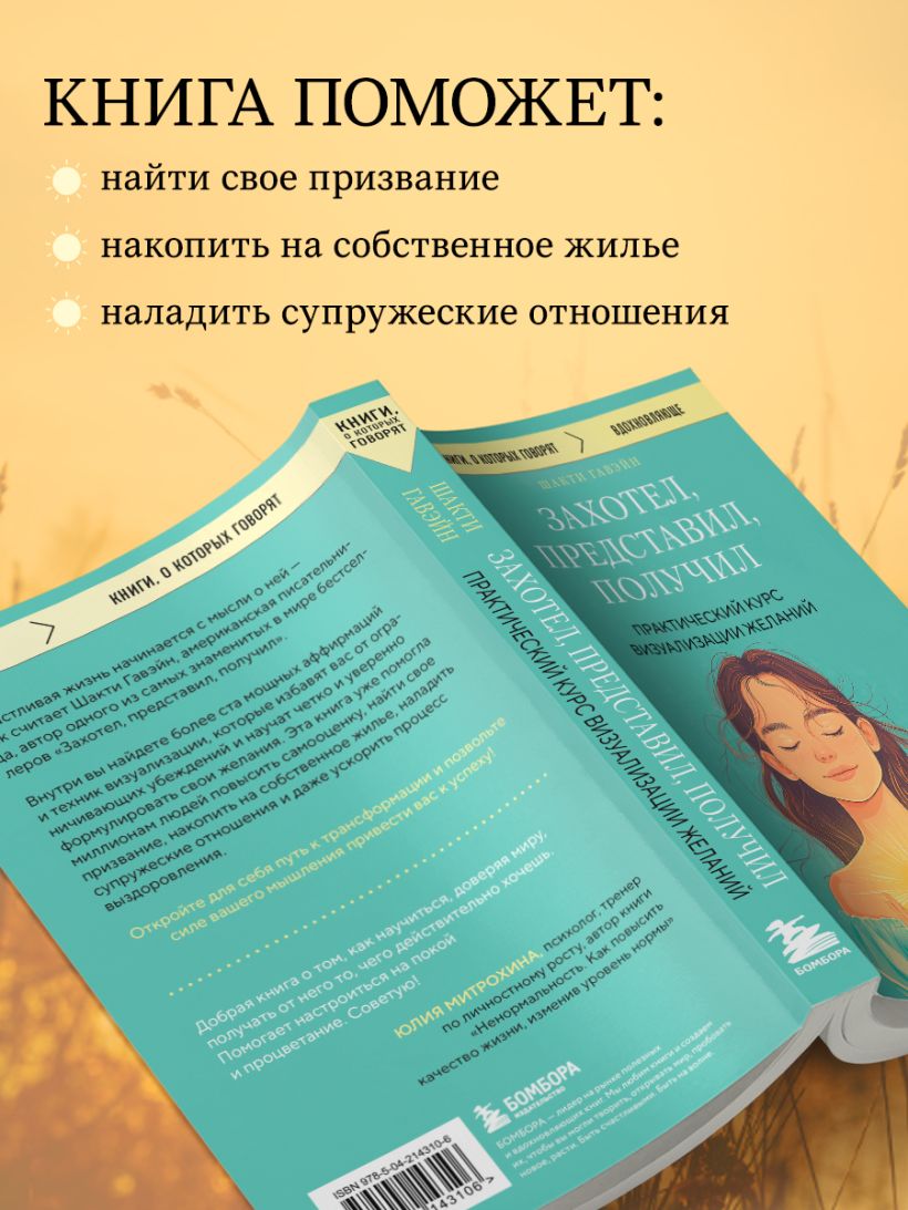 Счастливая жизнь начинается с мысли — так считает Шакти Гавэйн, американская писательница, автор западного бестселлера «Захотел, представил, получил». В книге она предлагает более 100 мощных аффирмаций и техник визуализации, которые избавят вас от ограничивающих убеждений и научат четко и уверенно формулировать свои желания.