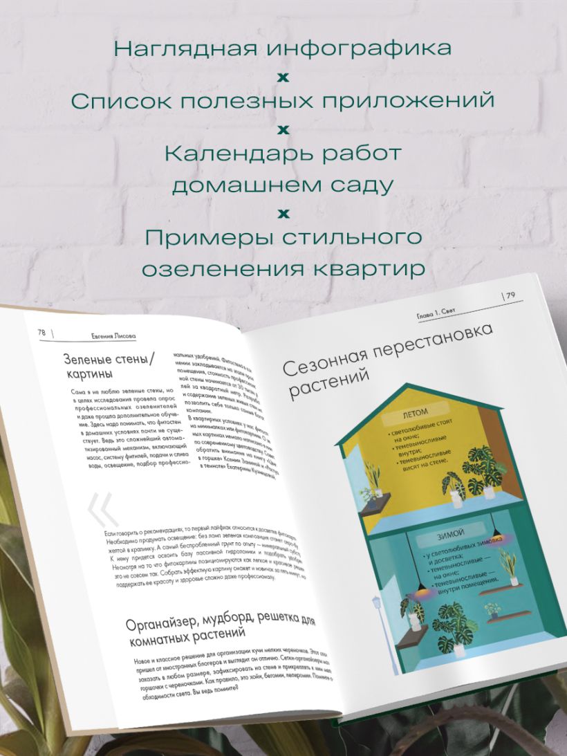 Мечтаете о пышных комнатных джунглях, но растения капризничают? Эта книга станет вашим главным помощником в мире комнатного цветоводства! Авторы — Мария Кушнир, Юлия Старцева и Юлия Гаер, создатели популярного обучающего проекта «О чем молчат растения?», делятся реальным опытом выращивания растений в обычных российских квартирах. Понятная пошаговая агротехника для проверенных и современных сортов, великолепные фотографии на каждом развороте, практические инструкции по уходу и секреты «языка растений» — все, что нужно для создания домашнего зеленого оазиса. Вы научитесь понимать, что говорит растение своим внешним видом, как вовремя распознать его потребности и избежать типичных ошибок в уходе. Книга подойдет как начинающим, так и опытным цветоводам, которые хотят систематизировать свои знания и вырастить здоровые, красивые растения. «Я получила настоящее эстетическое удовольствие от чтения и четкие инструкции о том, как улучшить уход за своими зелеными друзьями». — Евгения Лисова, автор книги «Заклинатель комнатных растений»
