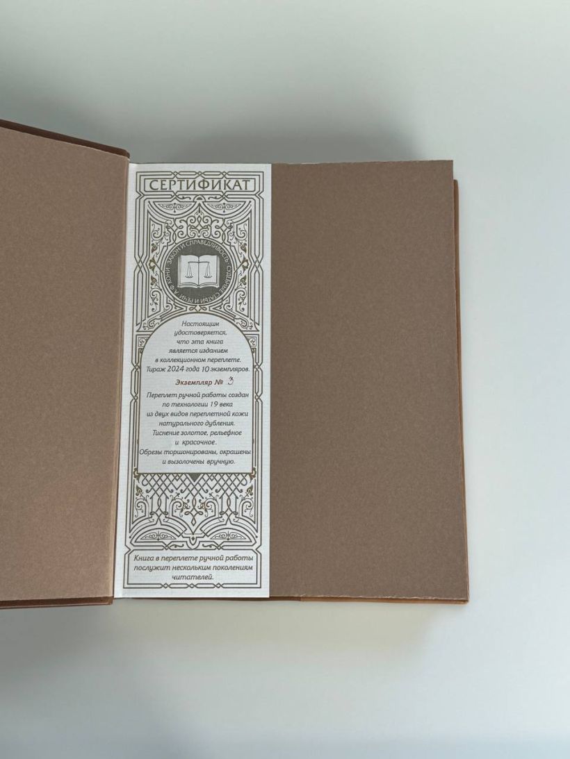 К книге прилагается красочный сертификат, подтверждающий уникальность издания, он вложен в каждый экземпляр и пронумерован.