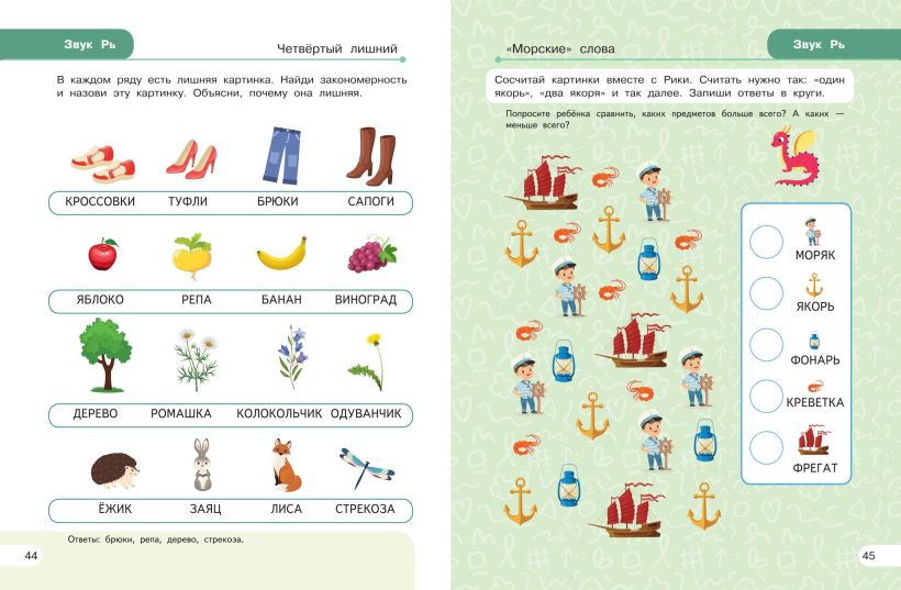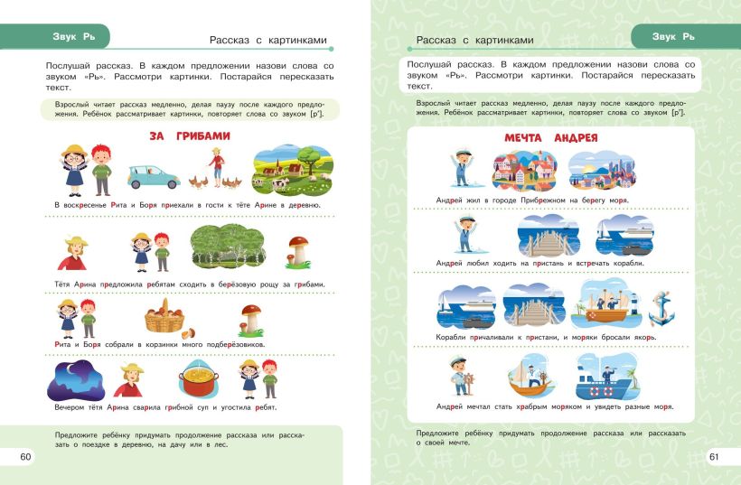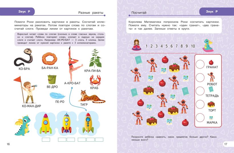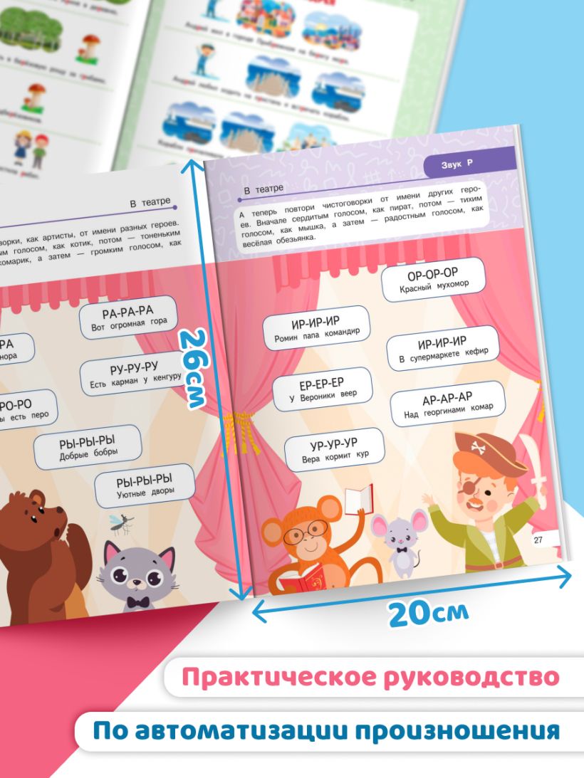 В книге представлена система упражнений для автоматизации звуков [р] и [рь] в речи ребёнка. В норме сонорные звуки [р] и [рь] начинают правильно звучать в речи дошкольника довольно поздно, в 6—7 лет. Если этого не происходит, необходима консультация логопеда, чтобы он помог ему добиться правильного произношения. И только потом можно приступать к самостоятельным занятиям дома. Книга входит в серию пособий «Логопедический тренажёр», предназначенных для педагогов и родителей, чтобы самостоятельно работать над речью дошкольника. Яркие иллюстрации и увлекательные задания помогут превратить монотонную и однообразную работу по закреплению в речи звуков [р] и [рь] в увлекательную игру. Каждое упражнение сопровождается подробными инструкциями для взрослых. Автор методики Лариса Анатольевна Комарова — педагог-логопед с многолетним опытом работы. Занимаясь по её книгам, несколько поколений детей стали обладателями грамотной и красивой речи. Её методику используют педагоги различных логопедических центров. Книга Издательства «ЭКСМО» поможет родителям, воспитателям детских садов и логопедам сделать речь ребёнка чёткой, красивой и выразительной.