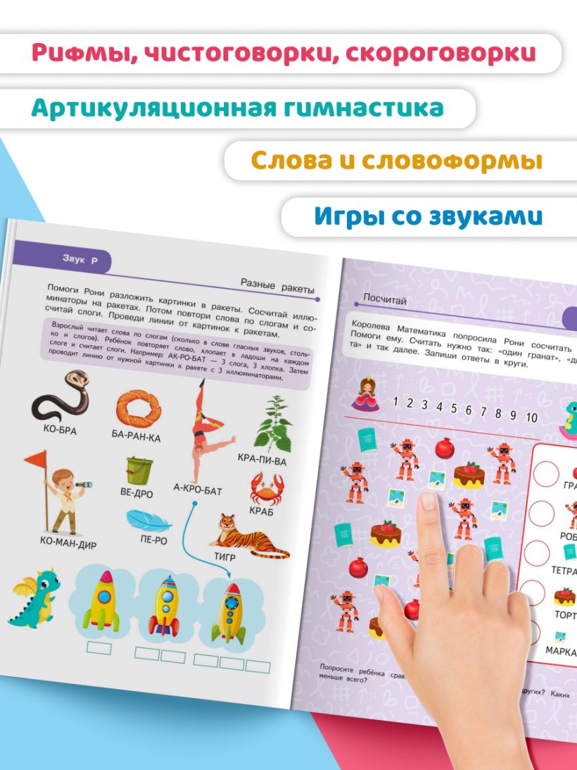 Комплект книг для детей 3, 4, 5, 6, 7 лет от издательства «Эксмо» поможет достичь отличного результата в формировании красивой и грамотной речи дошкольника и обеспечит успех при поступлении в первый класс. Логопеды-эксперты Елена Косинова и Ольга Перова — авторы бестселлеров, по которым занимаются несколько поколений детей. Методики с доказанной эффективностью — хит как у специалистов-логопедов России, так и у родителей, которые хотят сэкономить семейный бюджет и заниматься с ребенком самостоятельно без привлечения платных педагогов. Просто, понятно, легко применить на практике! Всего 15—20 минут в день — и произношение вашего ребенка изменится в лучшую сторону! В логопедическом тренажере огромное количество игровых заданий для поэтапной автоматизации трудных звуков. Один урок — один звук. Задания построены по принципу «от простого к сложному». Это позволяет начать работу с того раздела, который наиболее актуален для конкретного ребенка. Выполняя упражнения, малыш разовьет правильную артикуляцию, фонематический слух и расширит словарный запас. Тесты помогут самостоятельно, не приглашая платного специалиста, провести полную диагностику речи ребенка, а значит, вовремя заметить отклонения и помочь ему. Какая речевая область не развивается в соответствии с нормой, подскажет название теста, а в каком возрасте должно быть сформировано то или иное умение — возрастная маркировка задания. Ребенку будет интересно заниматься по книге, так как она содержит богатый наглядный материал и гарантированно увлечет малыша. Адресовано заботливым родителям и педагогам, занимающимся подготовкой детей к школе. Станет отличным подарком мальчику или девочке на любой праздник — Новый год, день рождения и просто без повода.