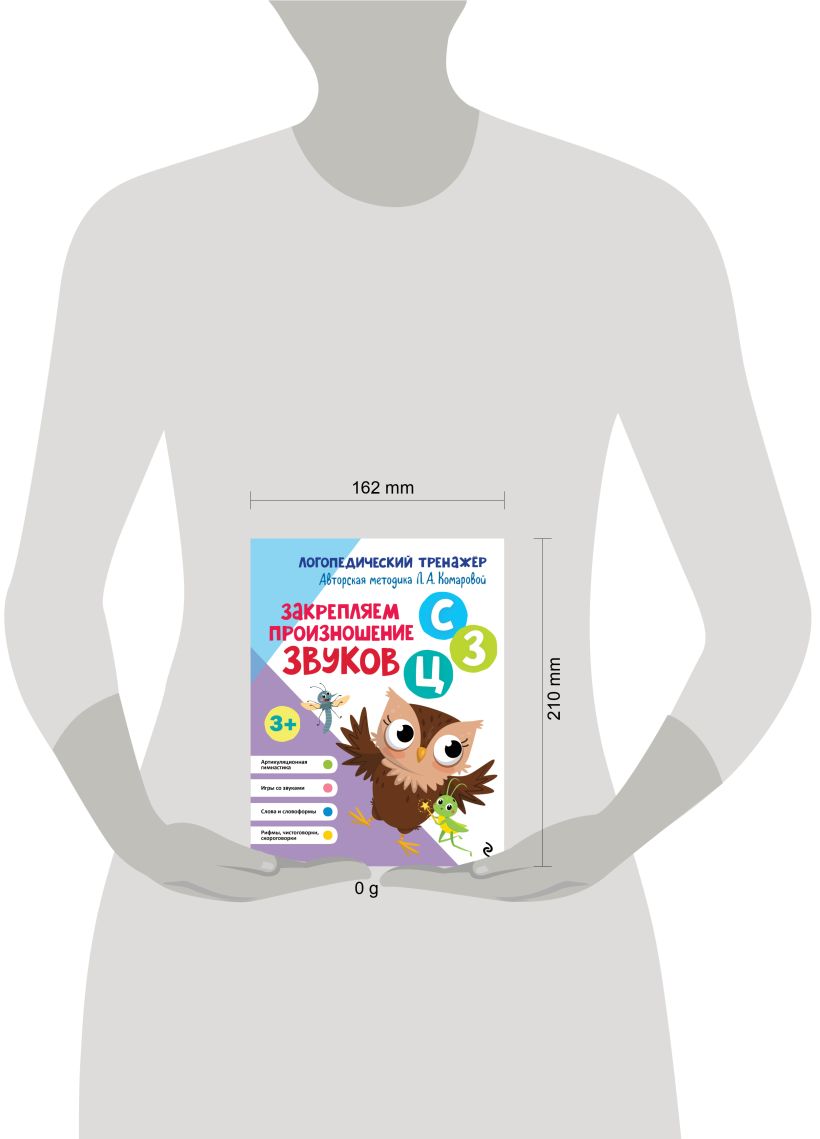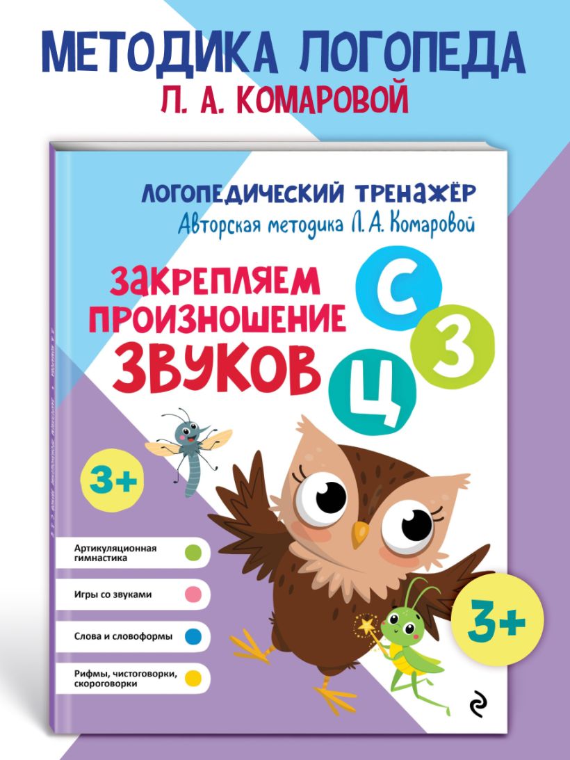 В книге представлена система упражнений для автоматизации звуков [с], [з] и [ц] в речи ребёнка. В норме свистящие звуки первыми начинают правильно звучать в речи малыша уже в 3—4 года. Если этого не происходит, необходима консультация логопеда, чтобы он помог дошкольнику добиться правильного произношения. И только потом можно приступать к самостоятельным занятиям с малышом. Книга входит в серию пособий «Логопедический тренажёр», предназначенных для педагогов и родителей, чтобы самостоятельно работать над речью ребёнка. Яркие иллюстрации и увлекательные задания помогут превратить монотонную и однообразную работу по закреплению в речи звуков [с], [з], [ц] в увлекательную игру. Каждое упражнение сопровождается подробными инструкциями для взрослых. Автор методики Лариса Анатольевна Комарова — педагог-логопед с многолетним опытом работы. Занимаясь по её книгам, несколько поколений детей стали обладателями грамотной и красивой речи. Её методику используют педагоги различных логопедических центров. Книга Издательства «ЭКСМО» поможет родителям, воспитателям детских садов и логопедам сделать речь ребёнка чёткой, красивой и выразительной.
