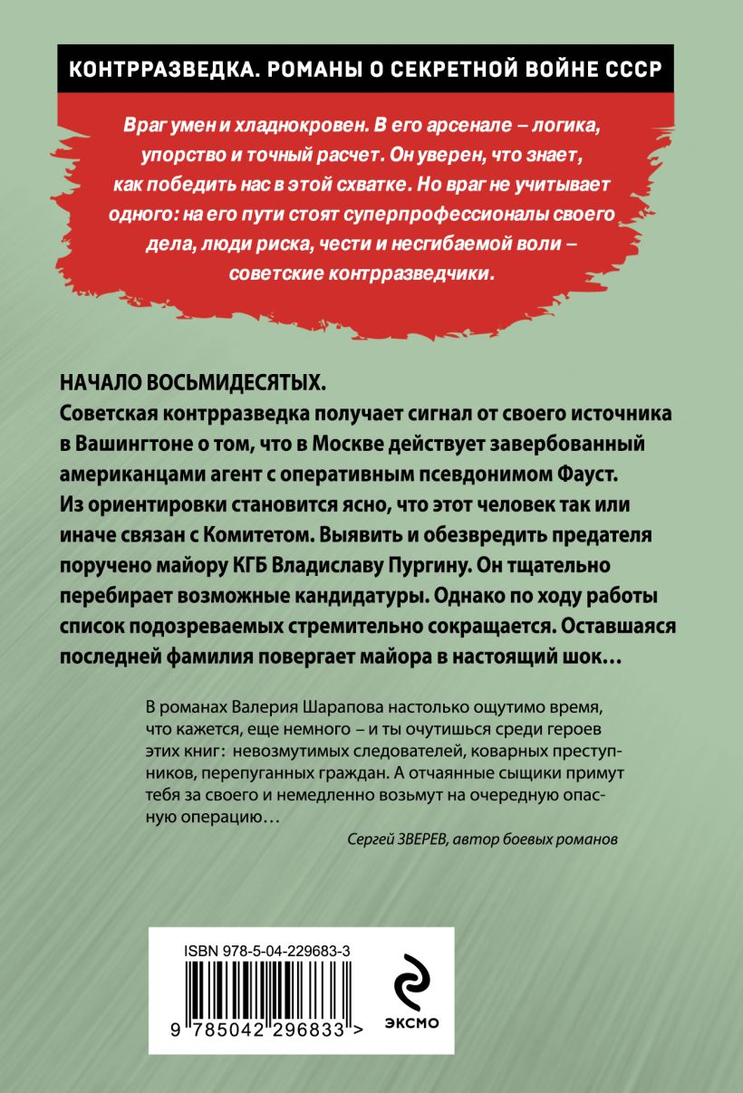 Начало восьмидесятых. Советская контрразведка получает сигнал от своего источника в Вашингтоне о том, что в Москве действует завербованный американцами агент с оперативным псевдонимом «Фауст». Из ориентировки становится ясно, что этот человек так или иначе связан с Комитетом. Выявить и обезвредить предателя поручено майору КГБ Владиславу Пургину. Он тщательно перебирает возможные кандидатуры. Однако по ходу работы список подозреваемых стремительно сокращается. Оставшаяся последней фамилия повергает майора в настоящий шок…